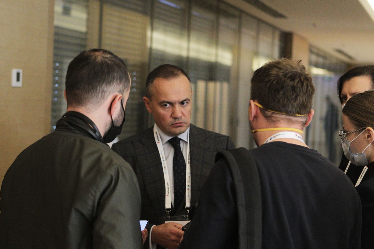系紅色領帶的里納特·阿克梅托夫控制着烏克蘭能源公司DTEK,該公司將根據計劃中的連接向歐洲供電。圖片來源:System Capital Management/法新社/蓋蒂圖片社DTEK發言人表示,該公司是多個國際組織的活躍成員,也是歐洲商業界的一部分。Centrenergo未回應置評請求。