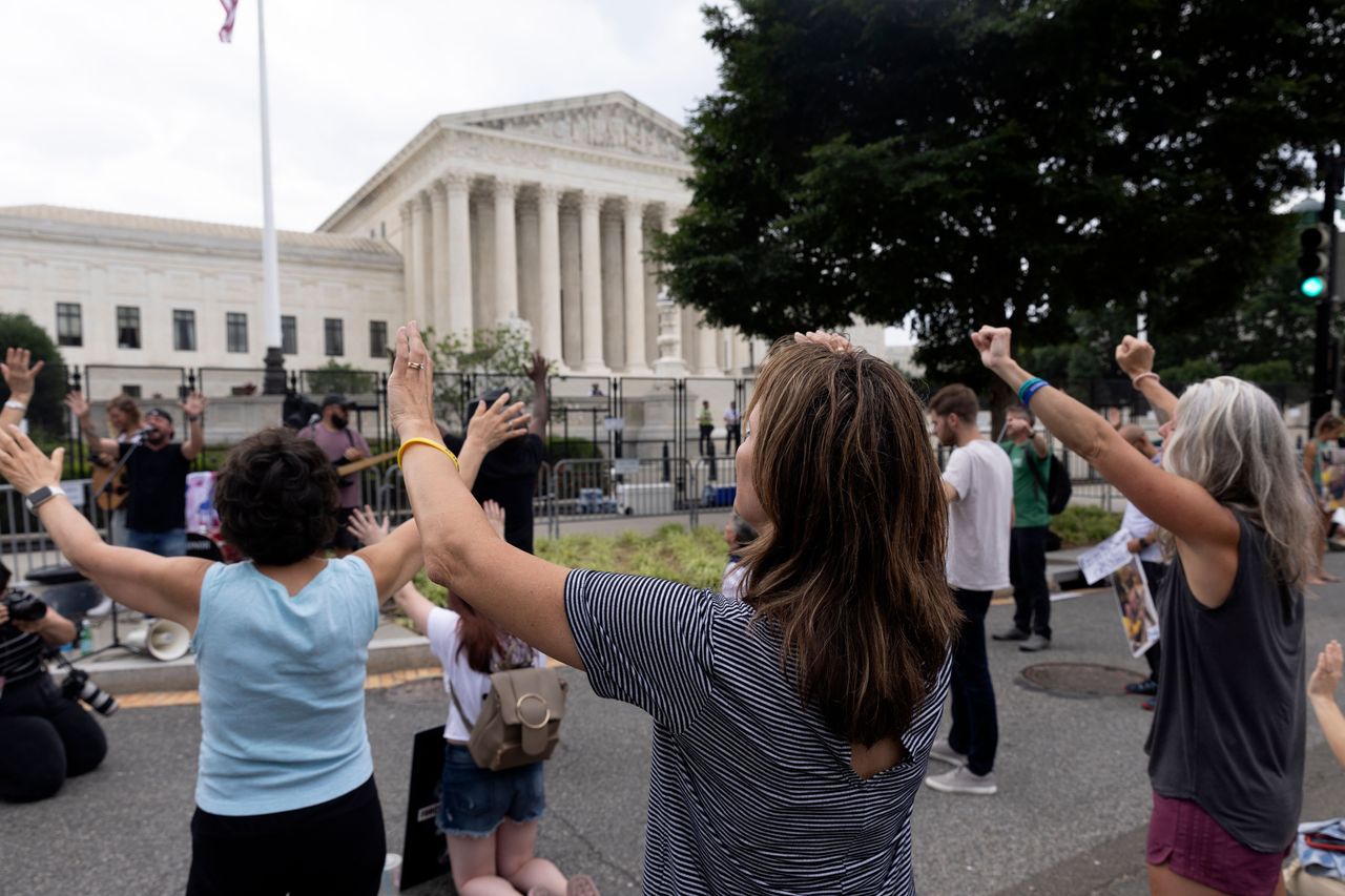 週一,反墮胎活動人士在華盛頓特區最高法院外祈禱,慶祝法院推翻羅訴韋德案的裁決。圖片來源:Michael Reynolds/EPA/Shutterstock週一出現了幾項羅案後的早期法律進展,路易斯安那州和猶他州的州法官發佈了限制令,暫時阻止了這些州的墮胎禁令,而一名聯邦法官為南卡羅來納州實施懷孕六週後禁止墮胎的禁令掃清了道路。