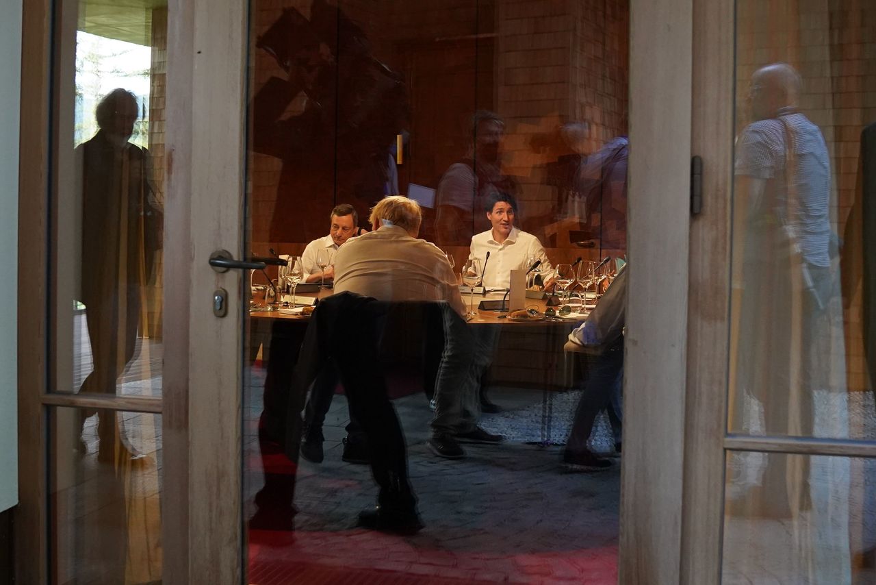 七國集團領導人在巴伐利亞阿爾卑斯山工作晚宴上。圖片來源:Pool/Getty Images多數七國集團成員國已停止進口俄羅斯石油,歐盟也通過了禁止為俄油運輸提供保險的禁令。為避免更多石油退出市場導致價格飆升,官員們正討論對低於限價的俄油運輸實行保險禁令豁免。