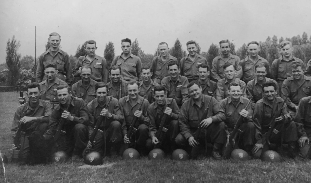 威廉·凱勒曼(前排左三)與第79步兵師的戰友們合影。圖片來源:美國陸軍他被俘了,第二天被轉移到一個關押着約80名戰俘的建築物中,其中一些人受了傷。黨衞軍士兵為了將戰俘押送到德國境內,強迫他們在夜間行軍,因為盟軍的飛機控制了天空。