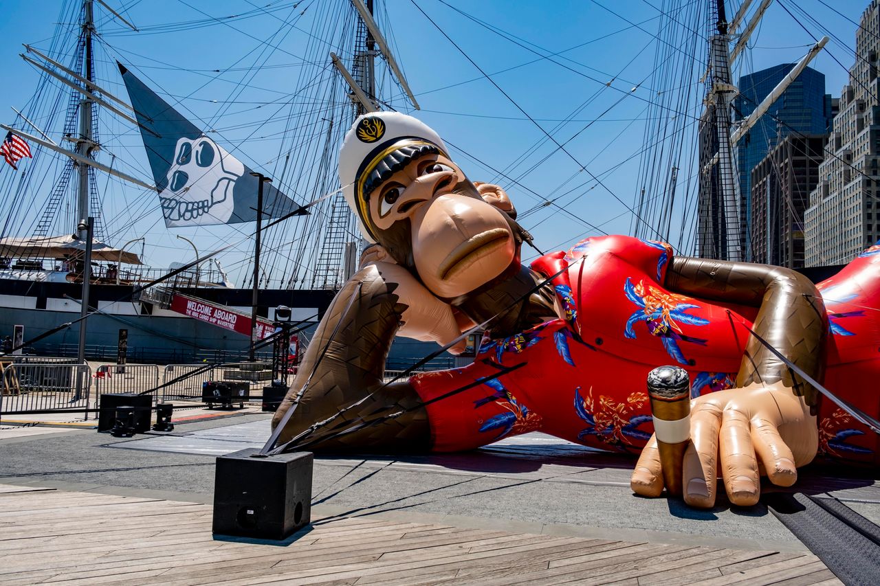 在上週NFT.NYC大會期間,一個充氣人偶在為"無聊猿遊艇俱樂部"(Bored Ape Yacht Club)的NFT做宣傳。圖片來源:Milo Hess/Zuma Press他説:“歸根結底……我認為你會看到很多傑出的用例,來自那些將這些項目視為終身事業和真正企業的人——而不僅僅是快速獲取資本的手段。未來是非常光明的。”