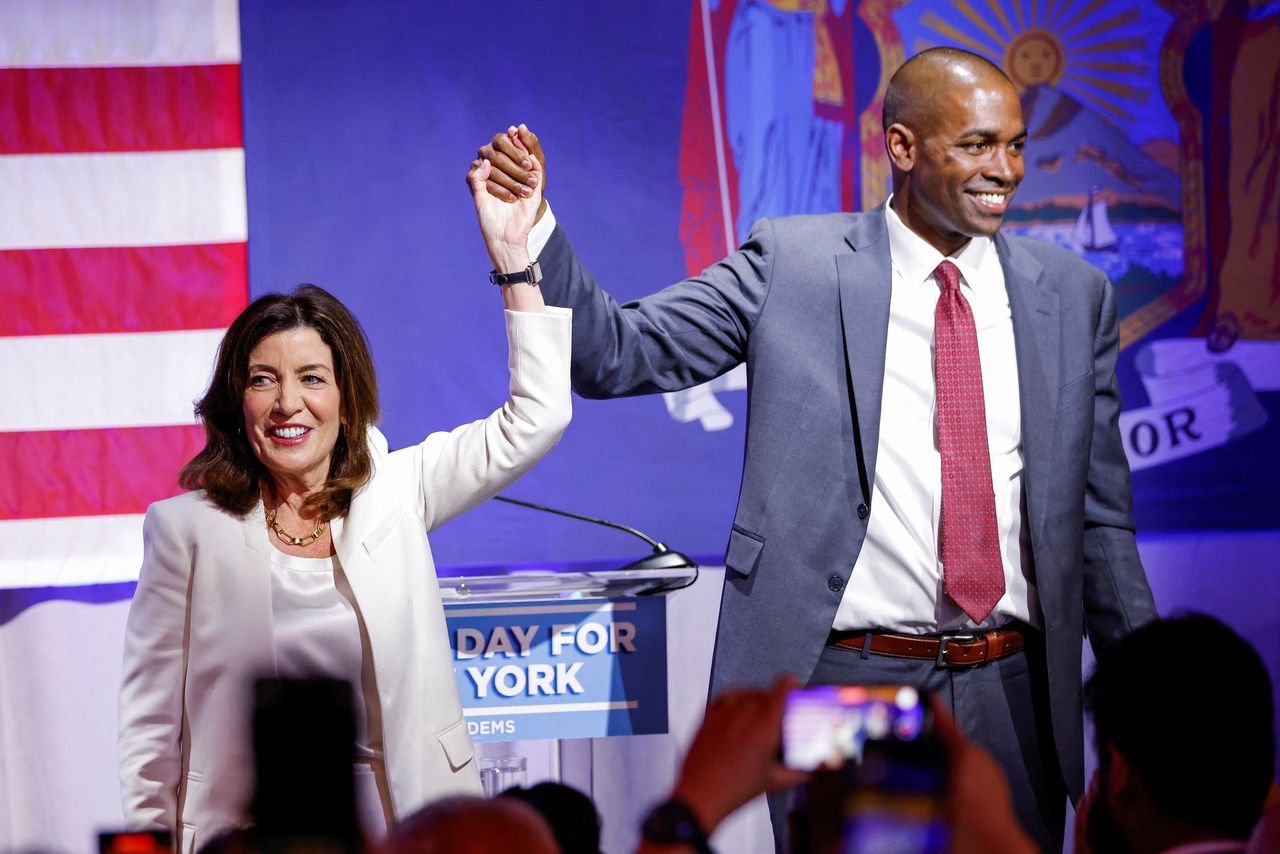 美聯社預測,前民主黨眾議員安東尼奧·德爾加多在副州長競選中勝出。他於五月獲霍楚女士任命該職位,並得到紐約州主要工會支持。進步派團體則聯合推舉社區組織者安娜·瑪麗亞·阿奇拉——她是威廉姆斯先生提名的候選人。與索齊搭檔參選的前紐約市議員迪安娜·雷娜位列第三。