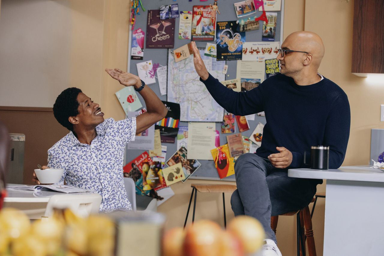 克里斯·桑迪福德和烏斯曼·艾利在Netflix新喜劇系列《上帝最愛的白痴》中。照片:文斯·瓦利圖蒂/Netflix### 烏斯曼的旅程
