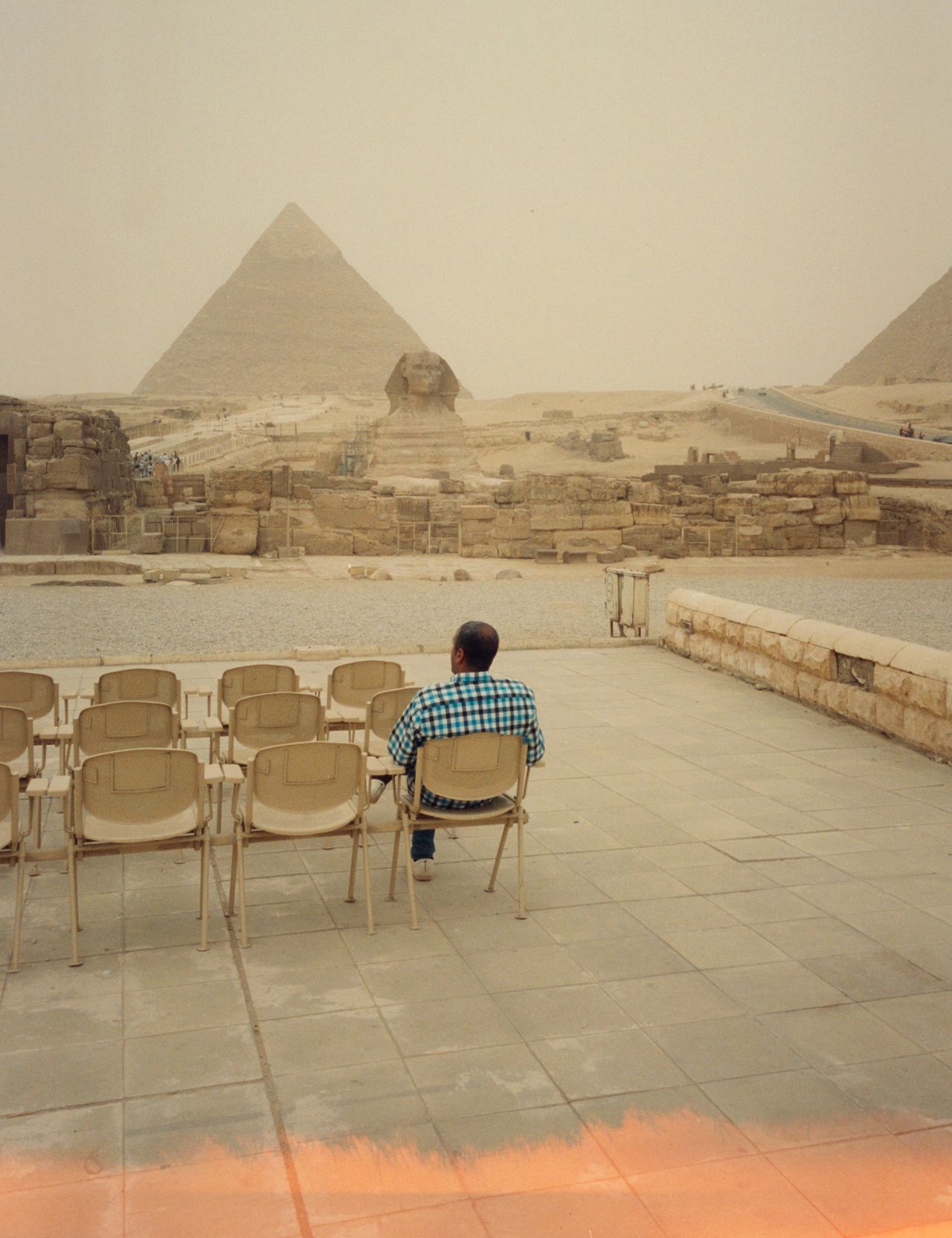 開羅附近吉薩金字塔與獅身人面像景觀。二十年前初次造訪埃及時,我沿尼羅河漫遊四周為古羅馬遊客相關書籍採風。在開羅下榻的温莎酒店曾是第一次世界大戰期間英國軍官俱樂部,其內酒吧宛如九旬戰犯與其彼得·洛式保鏢的聚集地。我參觀了藏於破敗的維多利亞時代埃及博物館的文物,這座被黑色鐵柵欄環繞的建築陰森如厄舍府。館內邂逅了皇家木乃伊首席策展人納斯里·伊斯坎德爾,他允許我觸摸3500年前的古埃及"拿破崙"——圖特摩斯三世法老未裹繃帶的遺體,當時正平放在石板上。