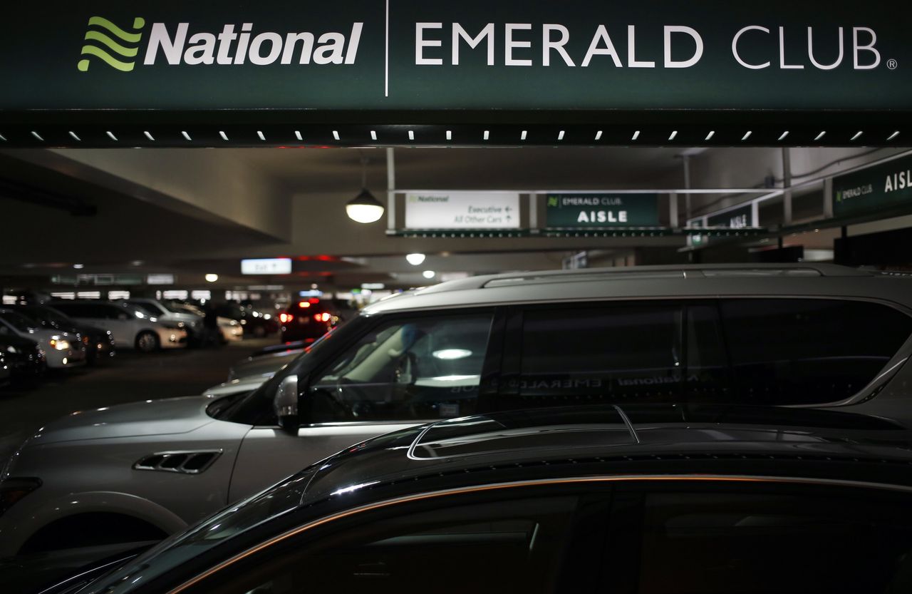 包括National在內的租車品牌已允許客户在部分區域提前預訂混合動力或電動車。圖片來源:Luke Sharrett/Bloomberg News來自佛羅里達州普蘭特城、31歲的IT工作者凱文·布魯爾擁有National汽車租賃公司的"翡翠俱樂部行政會員"身份,這保證他在以中型車價格預訂時能免費升級。