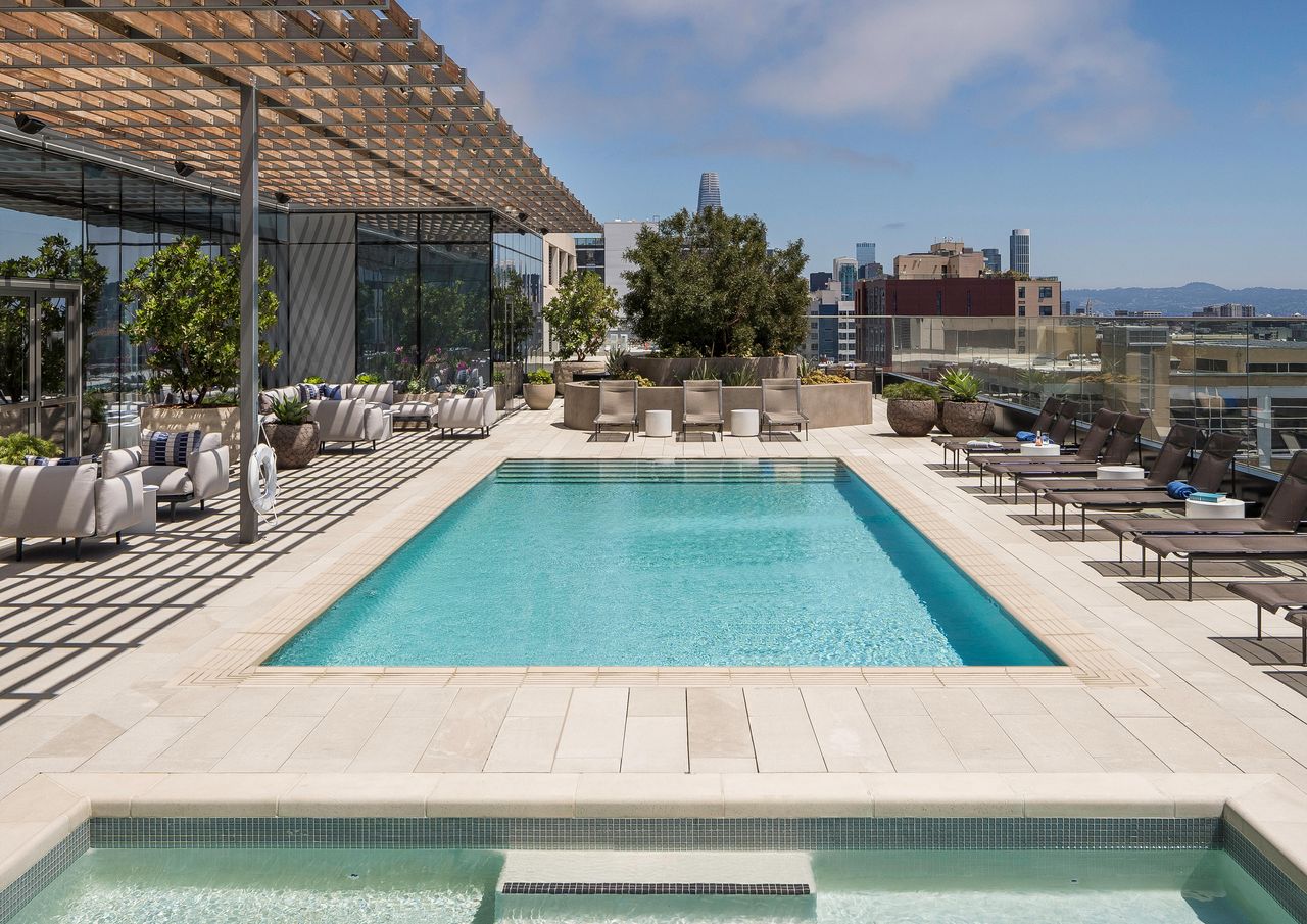 十五五十號的配套設施照片:亞當·波茨/加州相關公司該建築內設有Equinox Van Mission健身俱樂部。樓內設施包括一個12,000平方英尺的私人公園、5,600平方英尺的狗狗跑道以及屋頂泳池露台。