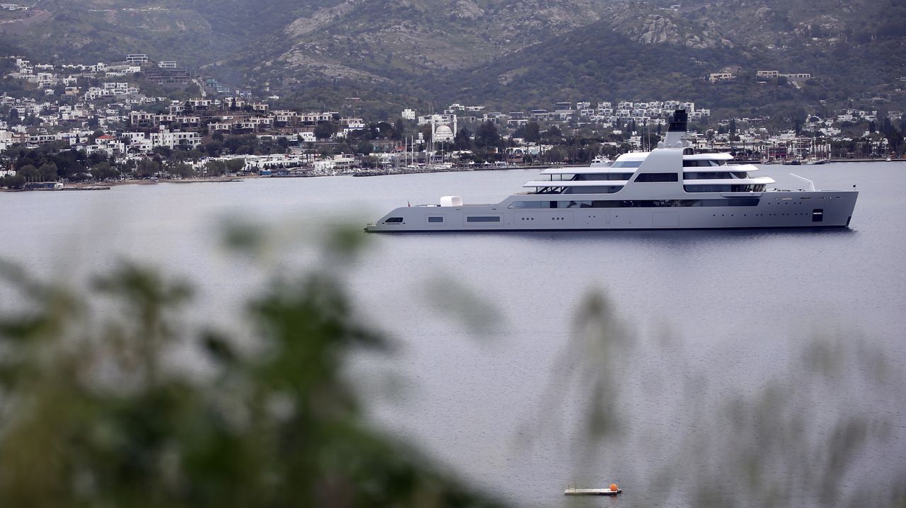 今年早些時候,億萬富翁羅曼·阿布拉莫維奇的"索拉里斯號"遊艇停泊在土耳其海岸附近。圖片來源:Ali Balli/Anadolu Agency/Getty Images俄羅斯四位最知名的寡頭正試圖推翻歐盟對他們實施的一系列制裁,他們在歐盟法院指控這些措施侵犯了其權利。