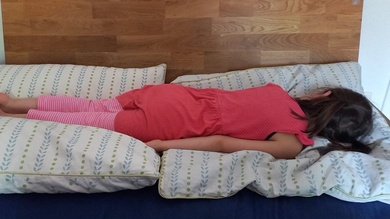 舍特勒5歲的女兒躺在父母枕頭上展示尺寸。照片:塞巴斯蒂安·舍特勒2015年,奧格雷迪女士參加柏林一場別出心裁的卧牀觀光之旅時,車上配備的自然是超大枕頭。“用其他尺寸就太遺憾了,“她説。