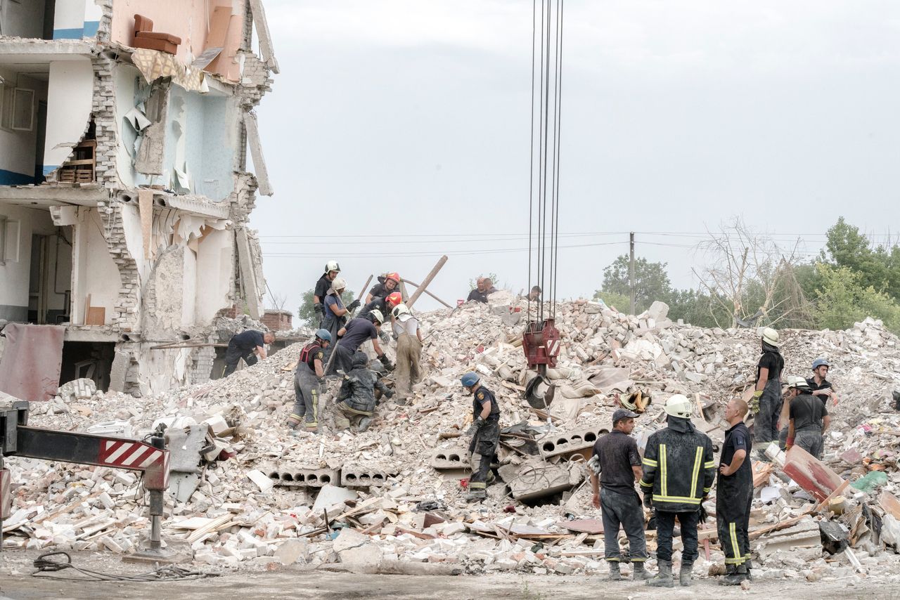 本月早些時候,在烏克蘭東部恰西夫亞爾遭俄軍襲擊後,救援人員正在廢墟中搜尋遇難者遺體。圖片來源:Emanuele Satolli/華爾街日報澤連斯基總統週一早些時候表示,開戰以來俄軍已發射逾3000枚巡航導彈。俄軍夜間向赫爾松州東北部城市尼科波爾的居民區和城市基礎設施發射了60多枚火箭彈。當地軍事行政長官瓦連京·列茲尼琴科在Telegram頻道上表示:“我們再次遭到敵軍炮擊。”