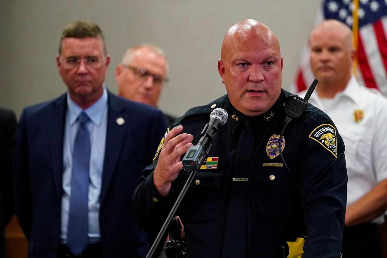 格林伍德警察局長吉姆·艾森在週一的新聞發佈會上發言。圖片來源:Michael Conroy/Associated Press購物中心運營商西蒙地產集團表示其旗下購物中心禁止攜帶武器。“我們感謝急救人員的迅速反應,包括阻止嫌犯的善心人士的英雄行為,“格林伍德公園購物中心在其網站上表示。