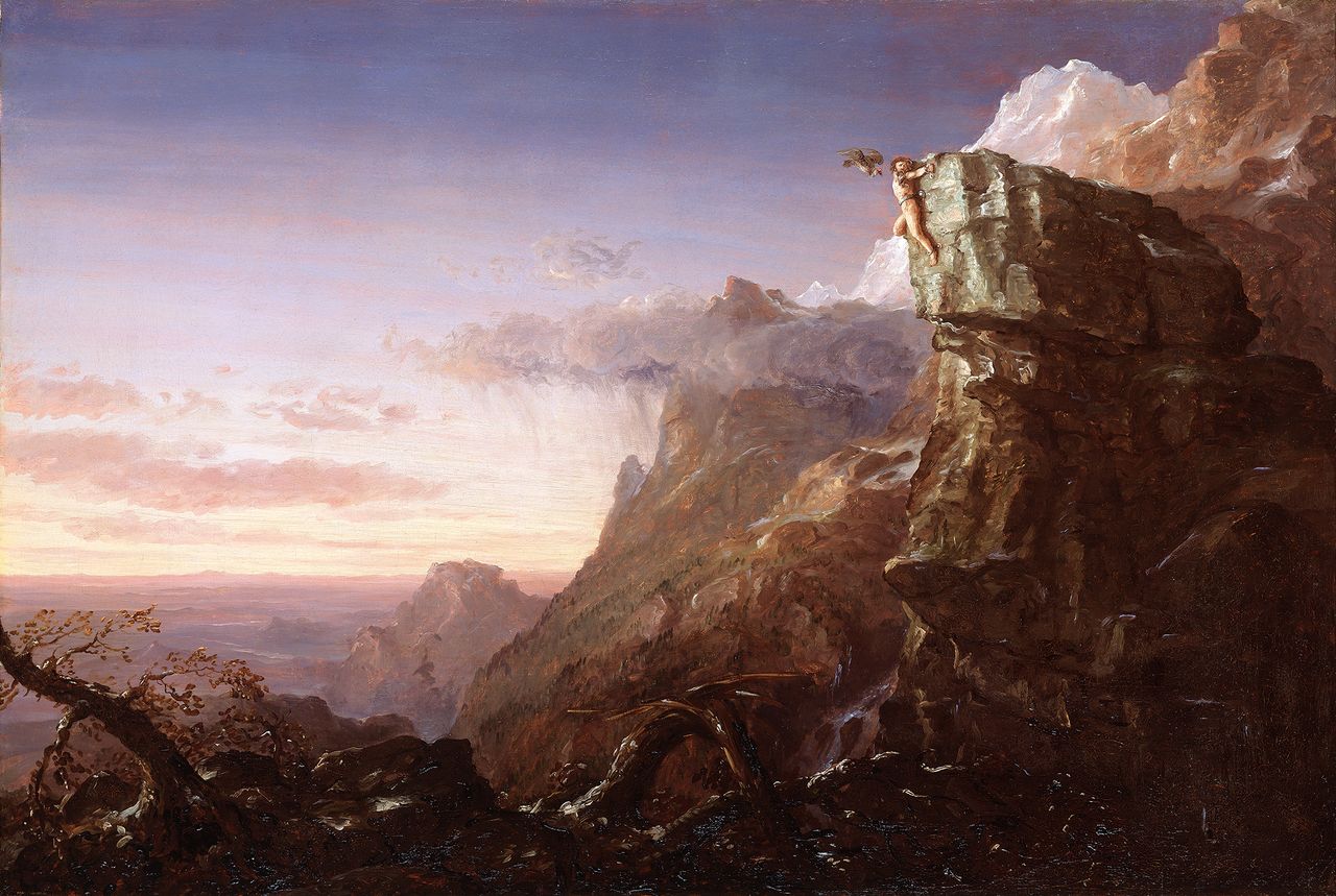 托馬斯·科爾的《被縛的普羅米修斯》(1847年)攝影:托馬斯·科爾國家歷史遺址在精美的展覽圖錄中,凱利先生指出,由於科爾對丘奇、賈斯珀·弗朗西斯·克羅普西等畫家以及後來被稱為哈德遜河畫派的其他成員的深遠影響,美國風景畫在19世紀中葉持續蓬勃發展。然而,考慮到科爾想象力的廣度、日益精進的技法以及他日益增長的創作具有崇高道德倫理內涵作品的雄心,我們只能推測,如果他還在世,可能會達到怎樣的更高成就。