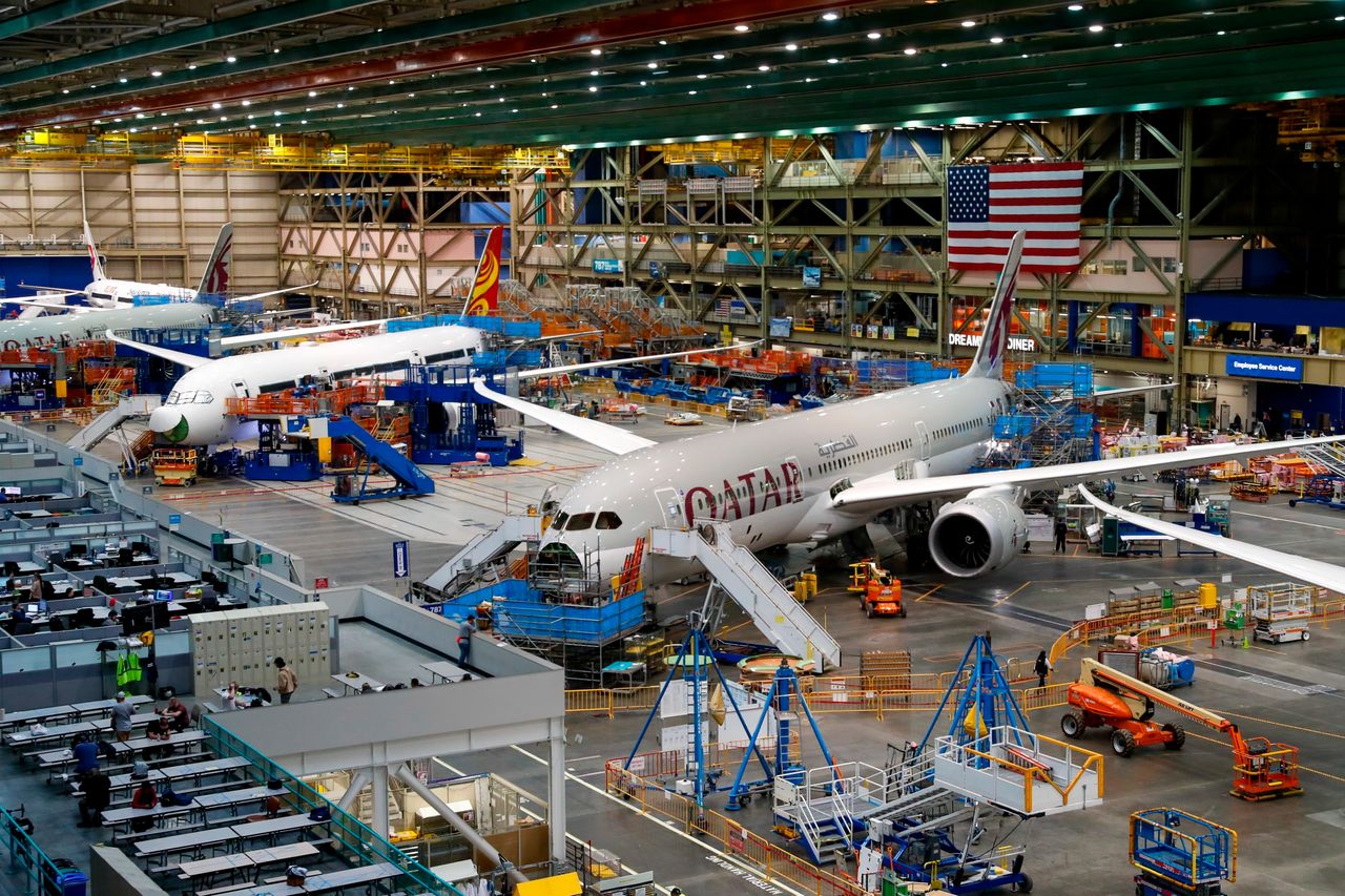 華盛頓州埃弗雷特工廠正在生產的波音787飛機。圖片來源:Jennifer Buchanan/Associated Press"如果重新開始交付,然後產量開始增加,那將非常棒,因為目前情況相當糟糕,“普蘭特在週一的一次採訪中説。