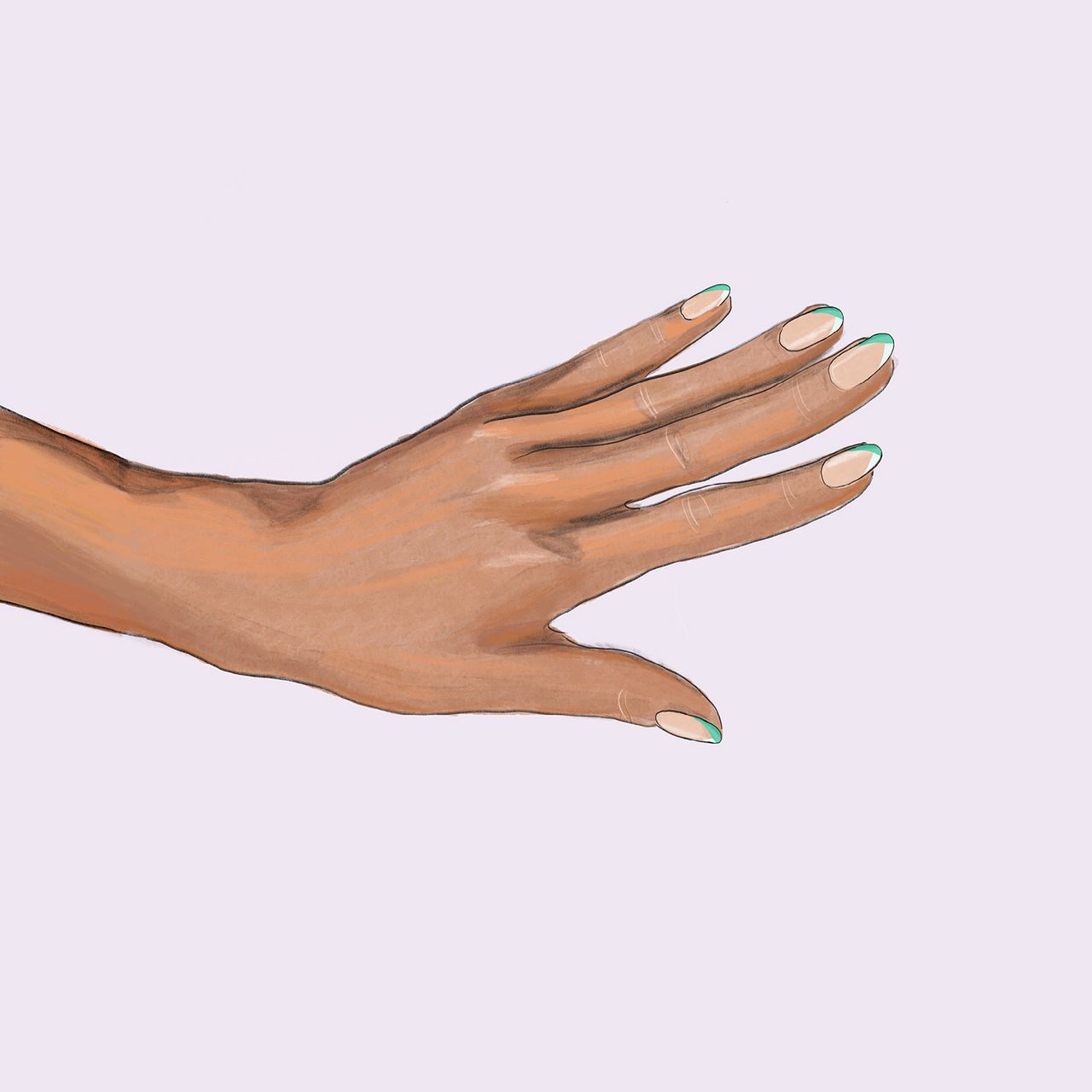 在“負空間”美甲中,法式指尖被細細勾勒但未填色。