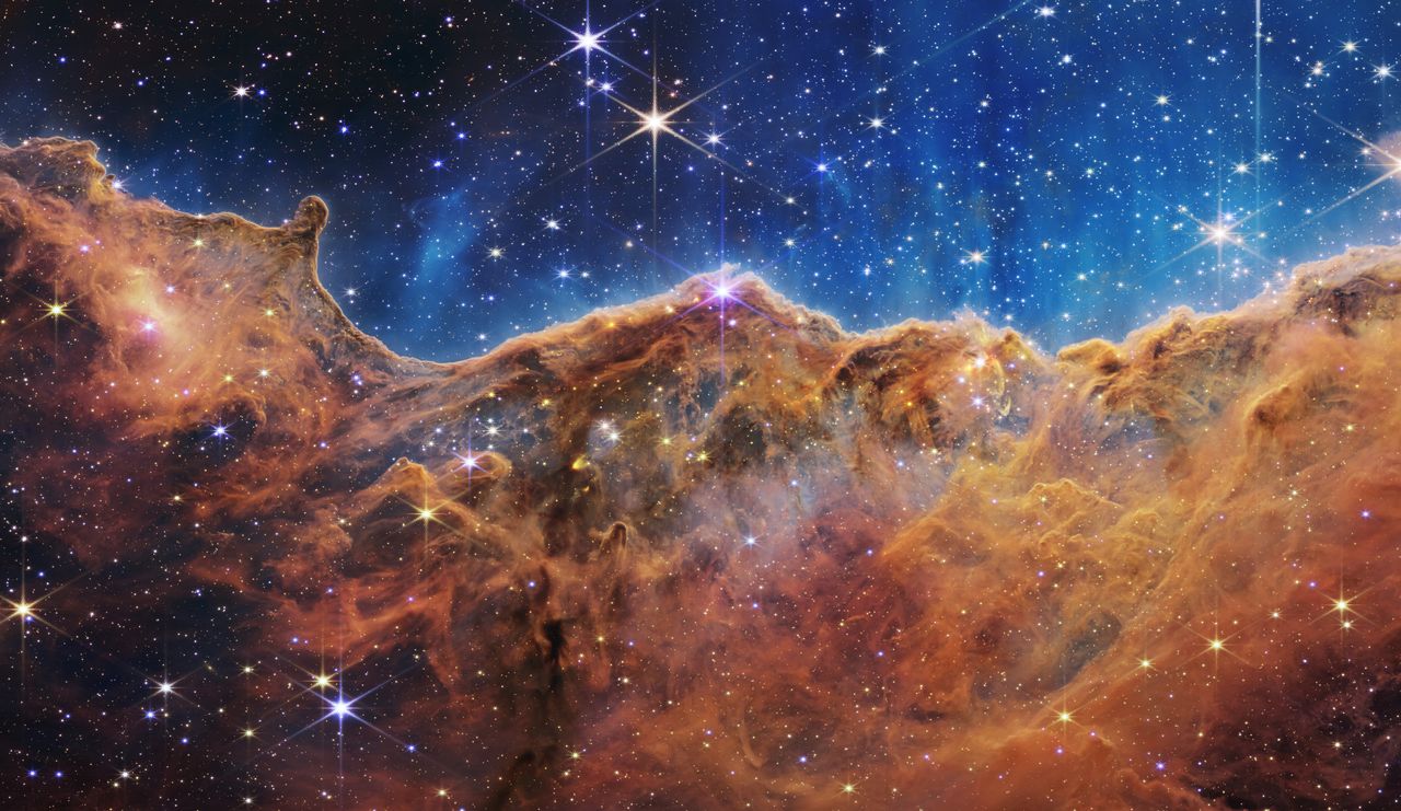 韋伯望遠鏡近紅外相機拍攝的船底座星雲“宇宙懸崖”區域圖片來源:美國宇航局英國皇家天文學家裏斯博士與加州伯克利分校天文學家戈德史密斯博士合著了《宇航員的終結:為何機器人是未來》一書,由哈佛大學出版社出版。