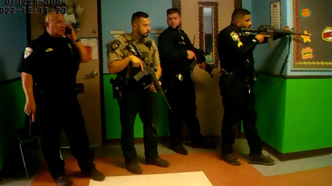 5月24日,槍手闖入得克薩斯州烏瓦爾德市羅伯小學後,警方在走廊部署。圖片來源:烏瓦爾德市警察局/路透社佩吉·努南在《烏瓦爾德視頻與警務工作的未來》(7月16日專欄文章)中的觀點一針見血。她指出了兩個關鍵點:首先,未能立即與得克薩斯州烏瓦爾德市的槍手交火加劇了悲劇。其次,在喬治·弗洛伊德事件後警察被污名化的時代,越來越少人願意承受不公正的審查去冒險。