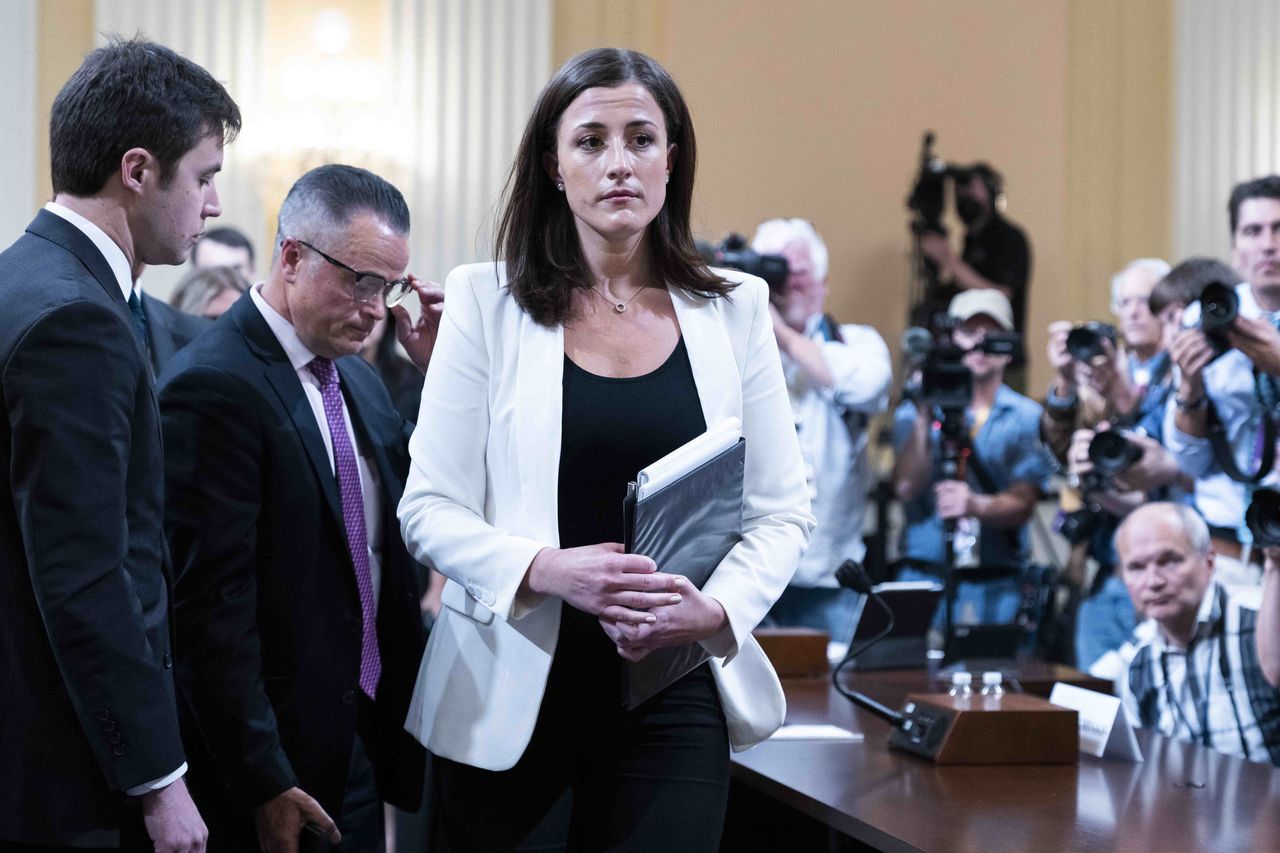 白宮前助理卡西迪·哈欽森上月出席眾議院特別委員會聽證會宣誓作證。圖片來源:肖恩·休/新聞圖片庫特朗普堅稱自己並無不當行為,並稱特別委員會的調查是政治迫害。週四聽證會後,特朗普對審理程序和部分證詞提出批評。“如此多的謊言和歪曲事實,“他在自創社交媒體"真實社交"上發文稱。