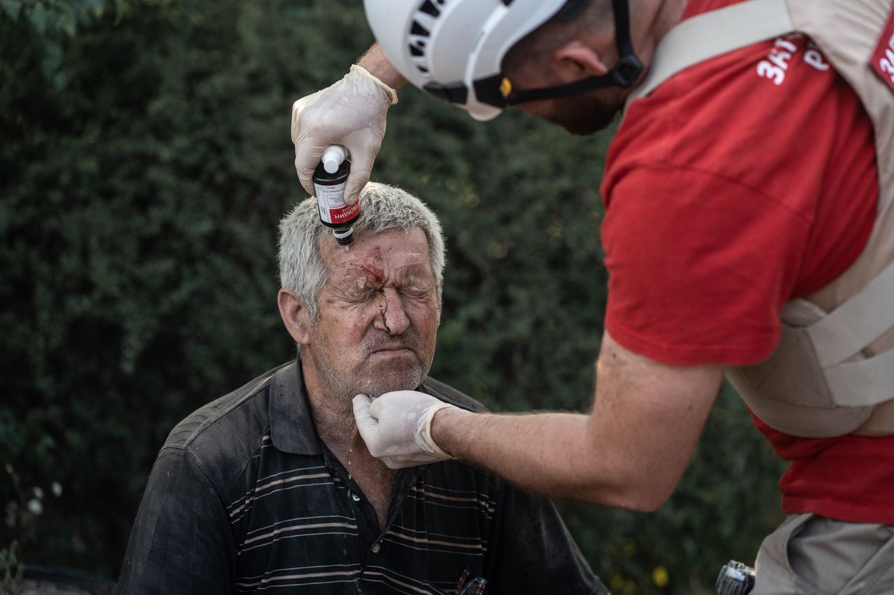 紅十字工作人員正在協助一位房屋被導彈摧毀的尼古拉耶夫居民。距離前線僅10英里的尼古拉耶夫科拉貝爾內區停車場管理員塔季揚娜·丘巴諾娃回憶,週六傍晚6時許,她正與朋友在值班崗亭內,突然聽到巨大爆炸聲。兩人衝出崗亭躲到後方,隨後炮彈擊中停車場。一輛轎車被衝擊波拋到30英尺外撞上圍欄,巴士燃起熊熊大火,車輛碎片飛濺數百英尺,擊穿附近公寓樓的窗户。一名16歲少年被玻璃碎片擊中胸部送醫。