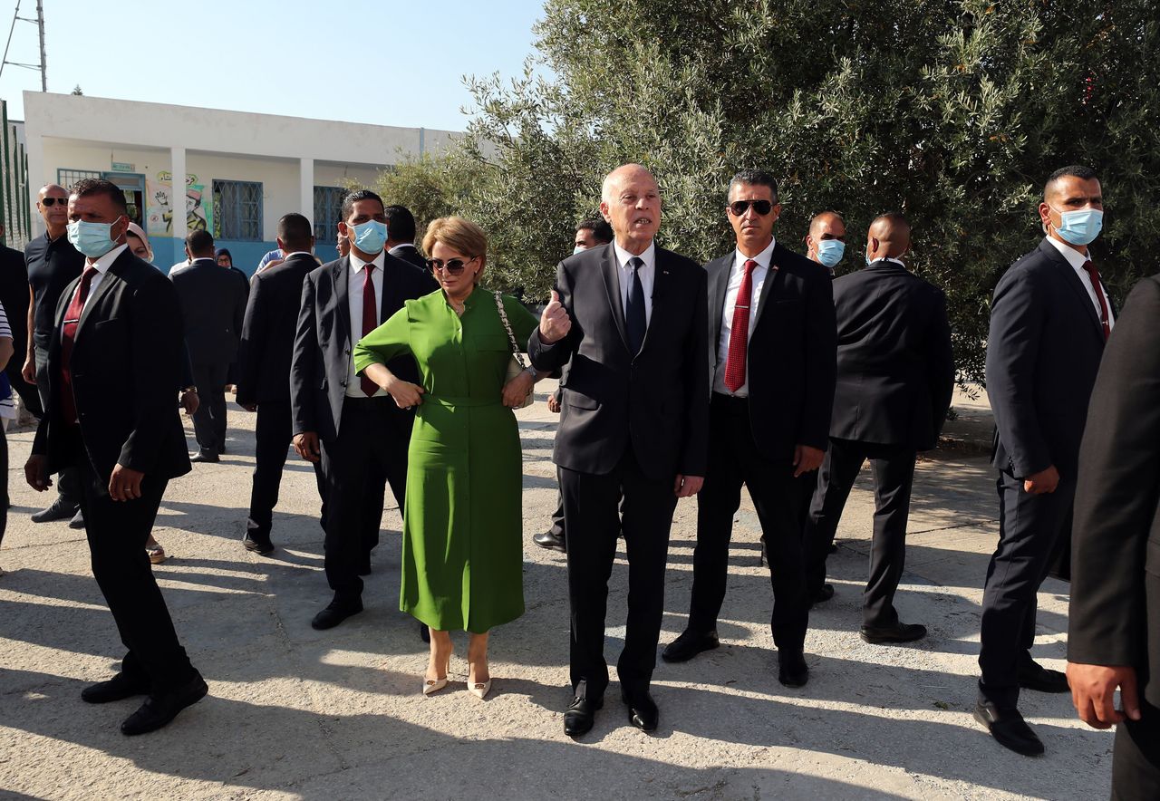 突尼斯總統凱斯·賽義德(打黑色領帶)與妻子週一在投票站投票後。圖片來源:mohamed messara/Shutterstock國際特赦組織的一份報告稱,如果通過,"[該憲法]將削弱司法獨立性,賦予總統宣佈無限制緊急狀態和不受制約統治的權利。"