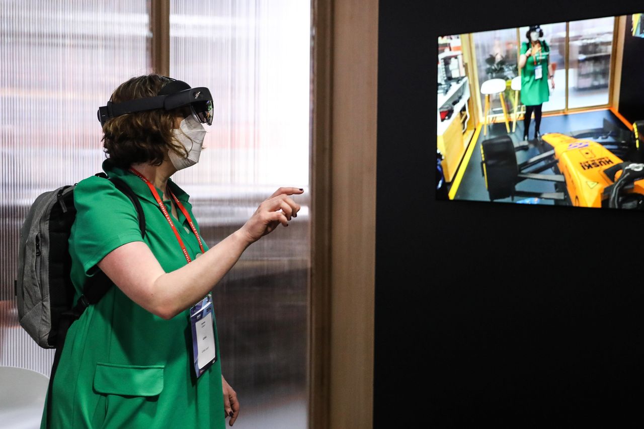 在巴塞羅那三月的一場會議上,一位參與者佩戴微軟HoloLens 2頭顯體驗虛擬現實場景。圖片來源:Angel Garcia/Bloomberg News疫情期間蓬勃發展的雲服務需求仍在增長,但增速更為温和。微軟曾報告其Azure平台(全球市場份額僅次於亞馬遜公司雲計算業務)連續多個季度實現50%及以上的同比銷售額增長。