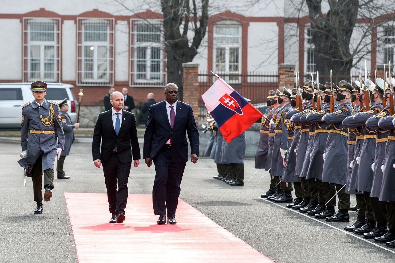 斯洛伐克國防部長雅羅斯拉夫·納德(左)今年早些時候在布拉迪斯拉發迎接美國國防部長勞埃德·奧斯汀。圖片來源:jakub gavlak/Shutterstock本月,美國參議院兩黨議員聯名致信國防部長勞埃德·奧斯汀和參謀長聯席會議主席馬克·米利陸軍上將,敦促考慮向烏克蘭提供先進戰機和飛行訓練。