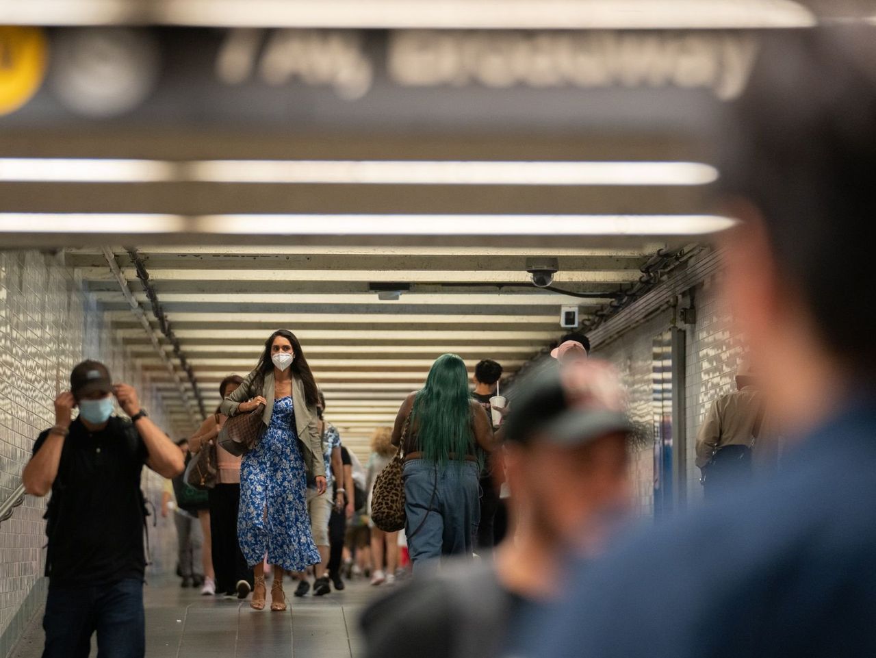 上個月,通勤者走過紐約時代廣場地鐵站。圖片來源:Jeenah Moon/Bloomberg News寫信給吉米·維爾金德,郵箱:[email protected]