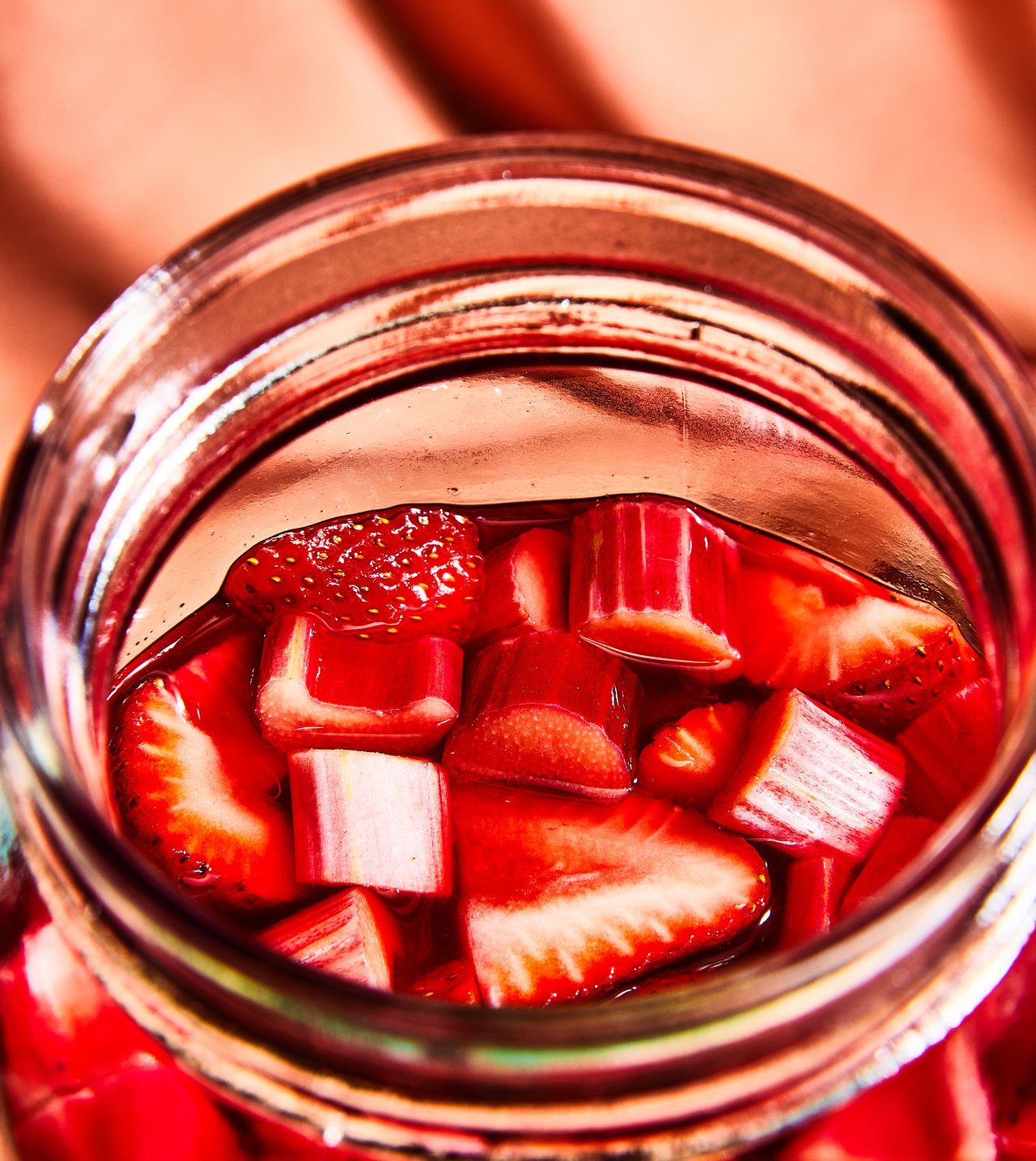 製作草莓大黃甜酒時,將大黃、草莓和伏特加放入帶蓋的罐中混合。完整配方如下。攝影:奧布里·皮克為《華爾街日報》拍攝,食品造型:阿曼達·安塞爾米諾,道具造型:安娜·拉本我家廚房枱面上擺滿了各種浸泡酒的罐子;我妻子是容忍這些的專家。如果我偶然遇到開花的接骨木叢,就會製作接骨木甜酒,就像聖日耳曼利口酒那樣,因其在調製雞尾酒中的流行而獲得了“調酒師番茄醬”的綽號。任何種類的水果,新鮮的或乾的,都可以使用。草莓大黃和桃子羅勒是經典的組合,而蘋果肉桂則為秋天製作出美味的類似派的浸泡酒。一旦你迷上了甜酒,你會發現你的廚房枱面也會看起來很像一個藥房。