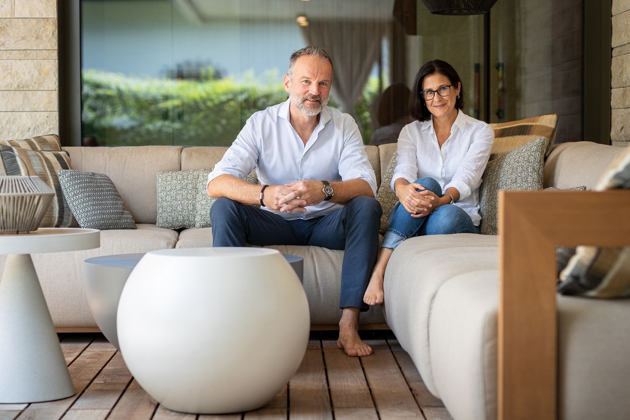 52歲的邁克·格魯伯是薩爾茨堡一家醫療用品公司的首席執行官,49歲的烏蘇拉·格魯伯擔任首席運營官。照片:斯特凡·佐納從市中心嘈雜地段搬遷而來的夫婦倆決定拆除地塊上現有的20世紀80年代獨户住宅,從頭開始建造。這位52歲的醫療用品公司CEO表示,他們原本考慮過翻新,但最初計劃用於出租的原住宅外觀"毫無價值可言"。於是,他們開始通過建築書籍等資料進行研究,最終選定諾伊特拉作為設計靈感,打造能陪伴他們度過退休生活的居所。他們還決定引入一個合作團隊:薩爾茨堡本地的哈羅建築師事務所和來自德國邊境的室內建築設計公司Spacesmunich。