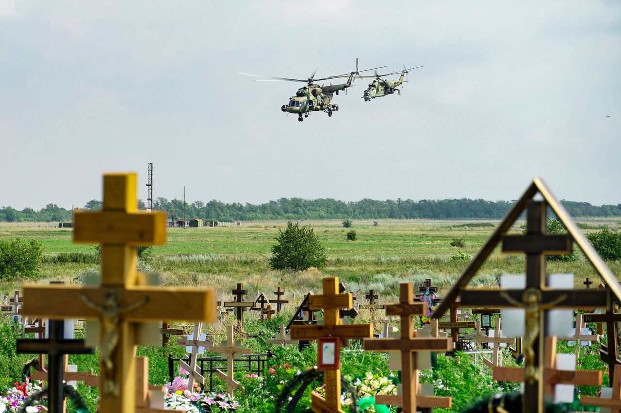 俄羅斯羅斯托夫地區某機場附近的俄軍直升機。圖片來源:stringer/法新社/蓋蒂圖片社