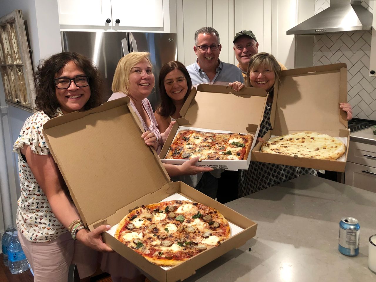 黛布·約漢南(左)和朋友們享用由Wonder送來的Di Fara披薩。圖片來源:傑伊·奧康奈爾梅普爾伍德市長迪安·達菲斯表示,一位被鎮上一些人稱為“神奇女俠”的Wonder政府關係代表參加了梅普爾伍德的兩場公開會議,“會上人們與她爭論不休”。