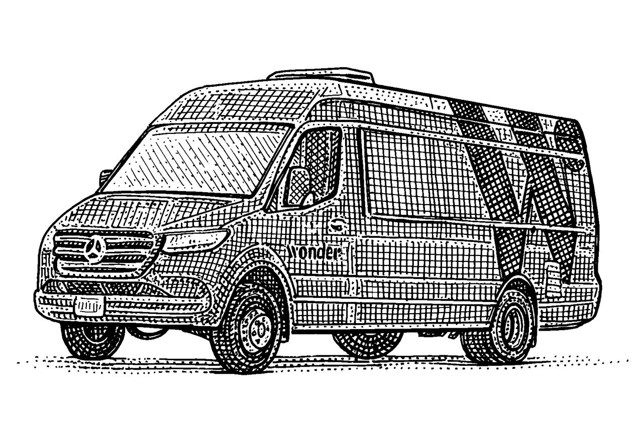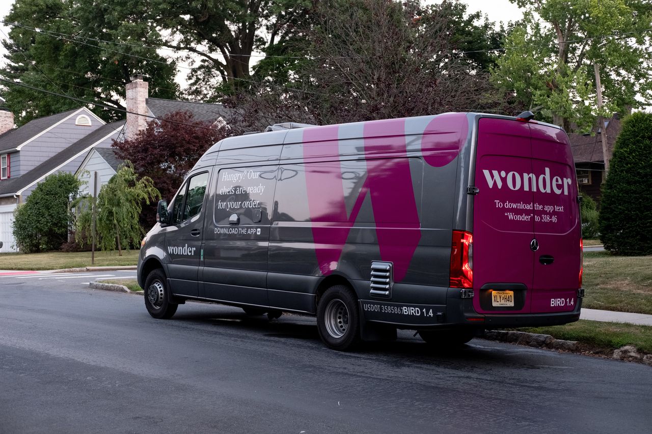這正是新興送餐服務Wonder——在紐約周邊約二十個新澤西通勤小鎮的夜晚,其灰紅相間的奔馳貨車已成為常見景象(與聲響)。這家公司最新一輪融資估值達35億美元,正快速擴張並計劃向全美投放數千輛餐車。