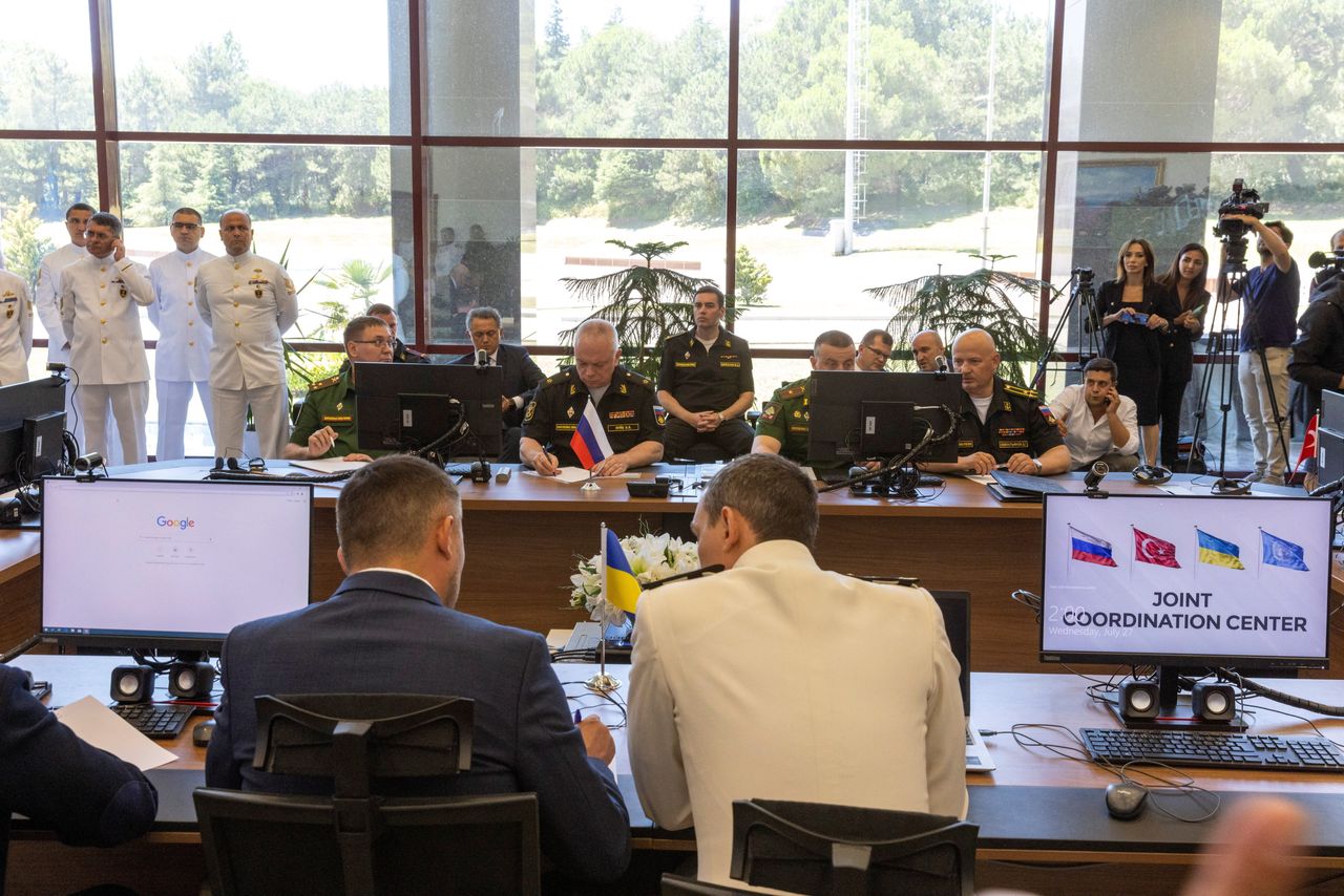 在位於伊斯坦布爾國防大學內的中心,一張方形桌子配備了計算機工作站,桌子的每一側分別對應協議各參與方,擺放着烏克蘭、俄羅斯、土耳其和聯合國的旗幟。一面大屏幕上顯示着黑海地圖。