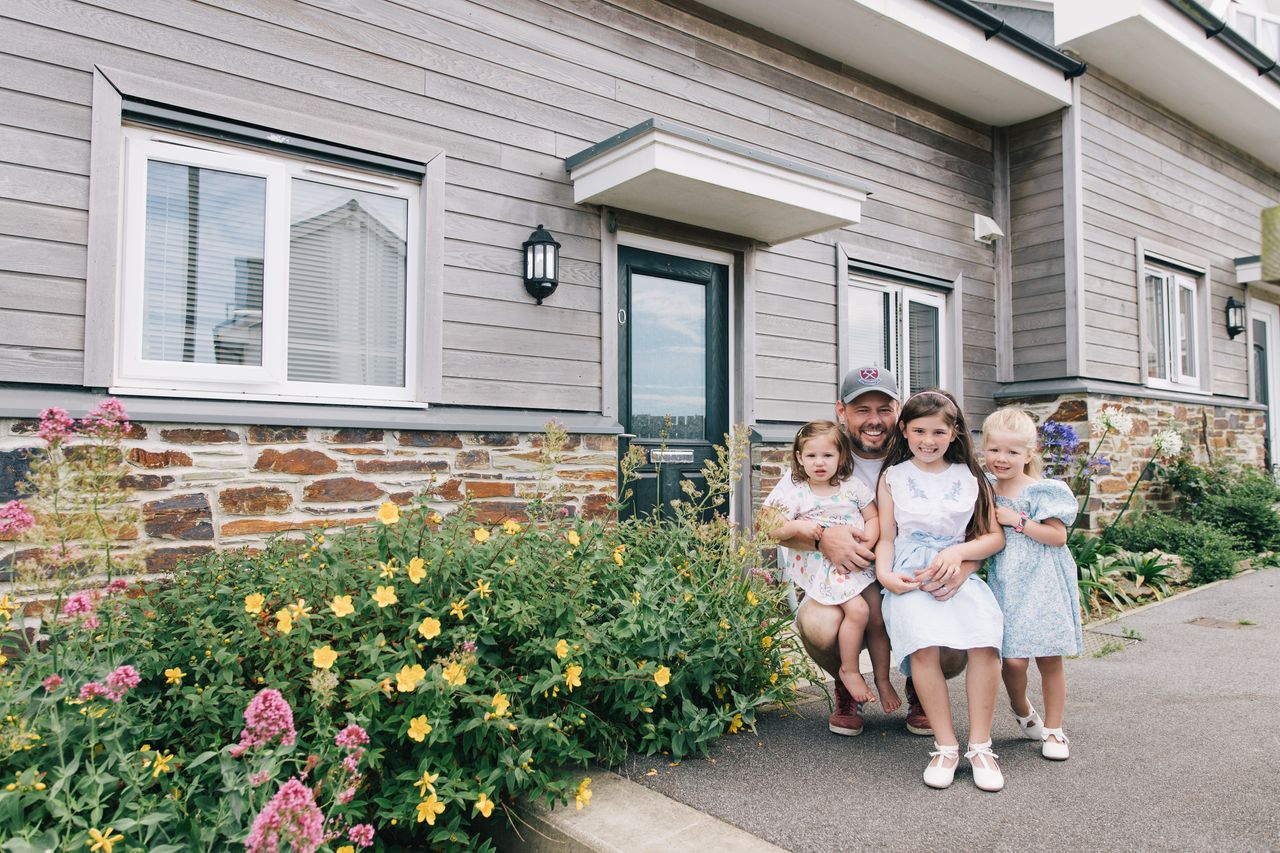 奧弗林先生與他的三個女兒在康沃爾特雷沃恩的家外合影42歲的奧弗林是The Chough Bakery的首席面包師,年收入約36,000美元。2016年,他和30歲的妻子佩奇不得不搬到內陸兩英里處更便宜的村莊特雷沃恩。通過一項補貼性經濟適用房計劃,他們買了一套兩居室的房子,與7歲、4歲和1歲的三個女兒一起居住。