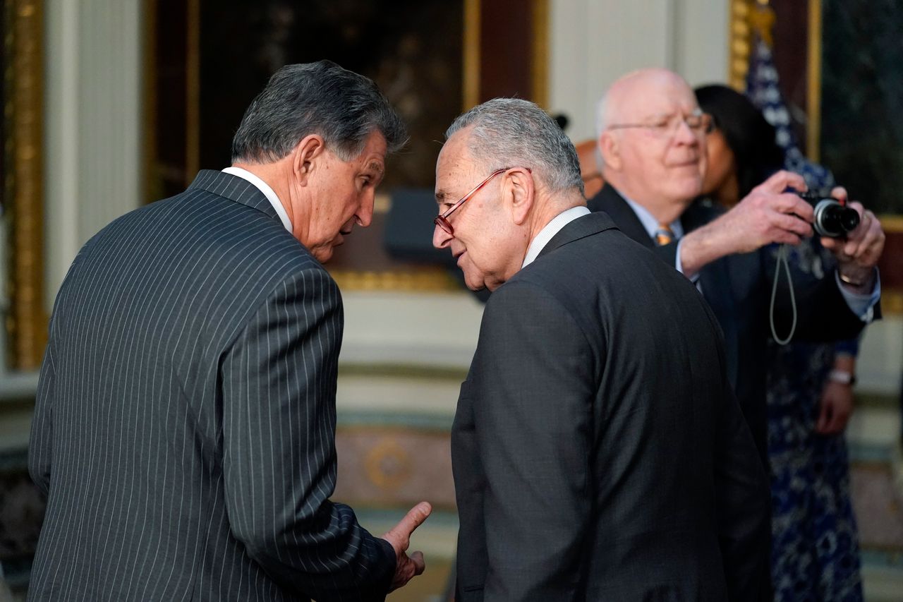 民主黨參議員喬·曼欽與參議院多數黨領袖查克·舒默上週就氣候變化、醫療保健和税收立法達成協議。圖片來源:Patrick Semansky/Associated Press參議院民主黨人正試圖讓華爾街部分最富有的人羣繳納更多税款,但這可能不如他們希望的那麼簡單。