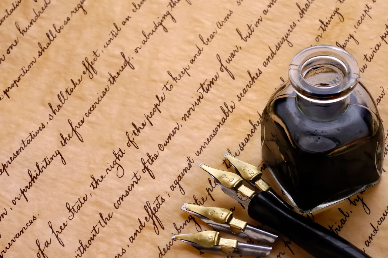 一套古老的書法用具和墨水擺放在國會文件上。圖片來源:Getty Images我在七年級時學習了書法,當時同學的母親在一堂下午的藝術課上教授基礎知識。對我來説,這簡直是明珠暗投。我算不上是個聰明的學生。藝術課只是我在課間休息和放學後足球訓練之間的消遣。但即便在我邋遢的青春期前,她優雅的筆觸也讓我覺得美不勝收。