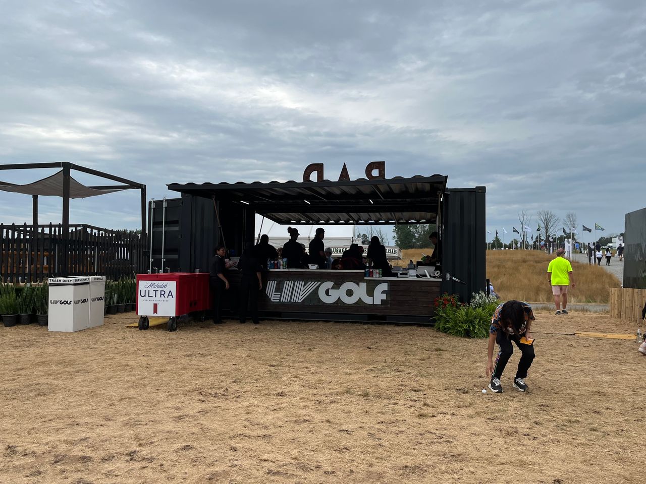 球迷村內的酒吧前無人排隊。圖片來源:Andrew Beaton/華爾街日報雖然LIV的標語之一是"高爾夫,但要更喧鬧”,但賽事首日現場並未出現預期中的熱烈氛圍。週五某些區域人頭攢動,但隨着時間推移,包括德尚博等明星選手所在的球洞也只有零星觀眾。設有餐車和各類活動的"球迷村"也未見擁擠,下午三點酒吧前仍無需排隊。