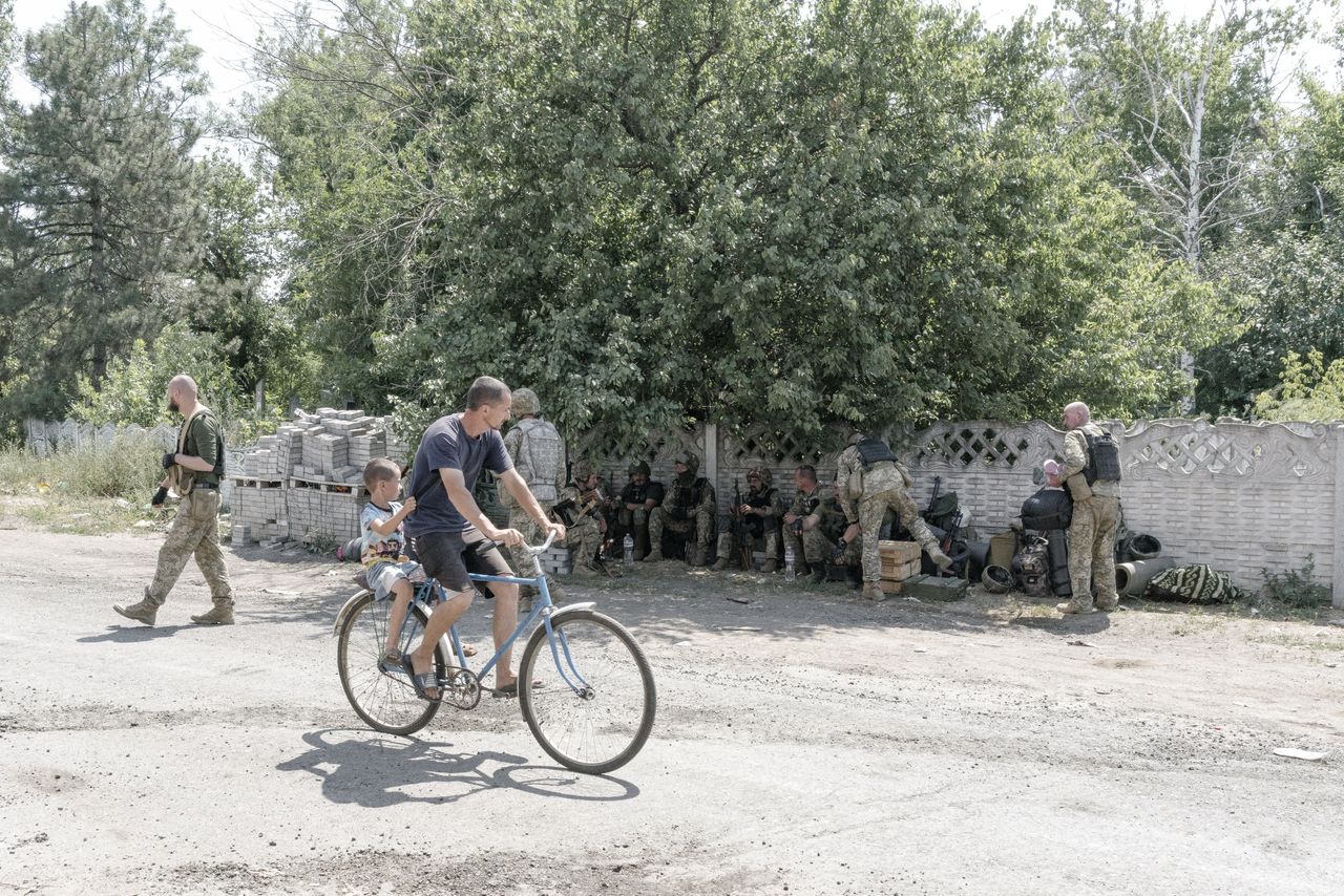 零星的炮火摧毀了部分農舍,震碎了其他房屋的窗户。費達克神父的信眾已減至寥寥數人,但近來參加彌撒的士兵人數激增。他表示自己每天多次查看手機地圖,觀察通常不足10英里遠的前線是否發生重大變動。