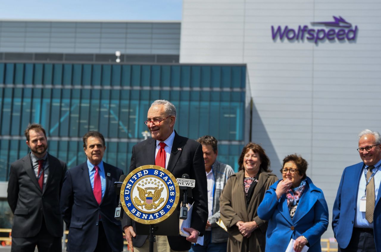 參議員查克·舒默(紐約州民主黨人)在紐約州馬西的Wolfspeed芯片製造廠。照片:希瑟·安斯沃思為《華爾街日報》拍攝行業高管、立法者和半導體分析師表示,美國的新激勵措施將有助於降低在美國本土建立先進芯片工廠的顯著更高的價格標籤,這些措施在週四眾議院投票後獲得國會通過。