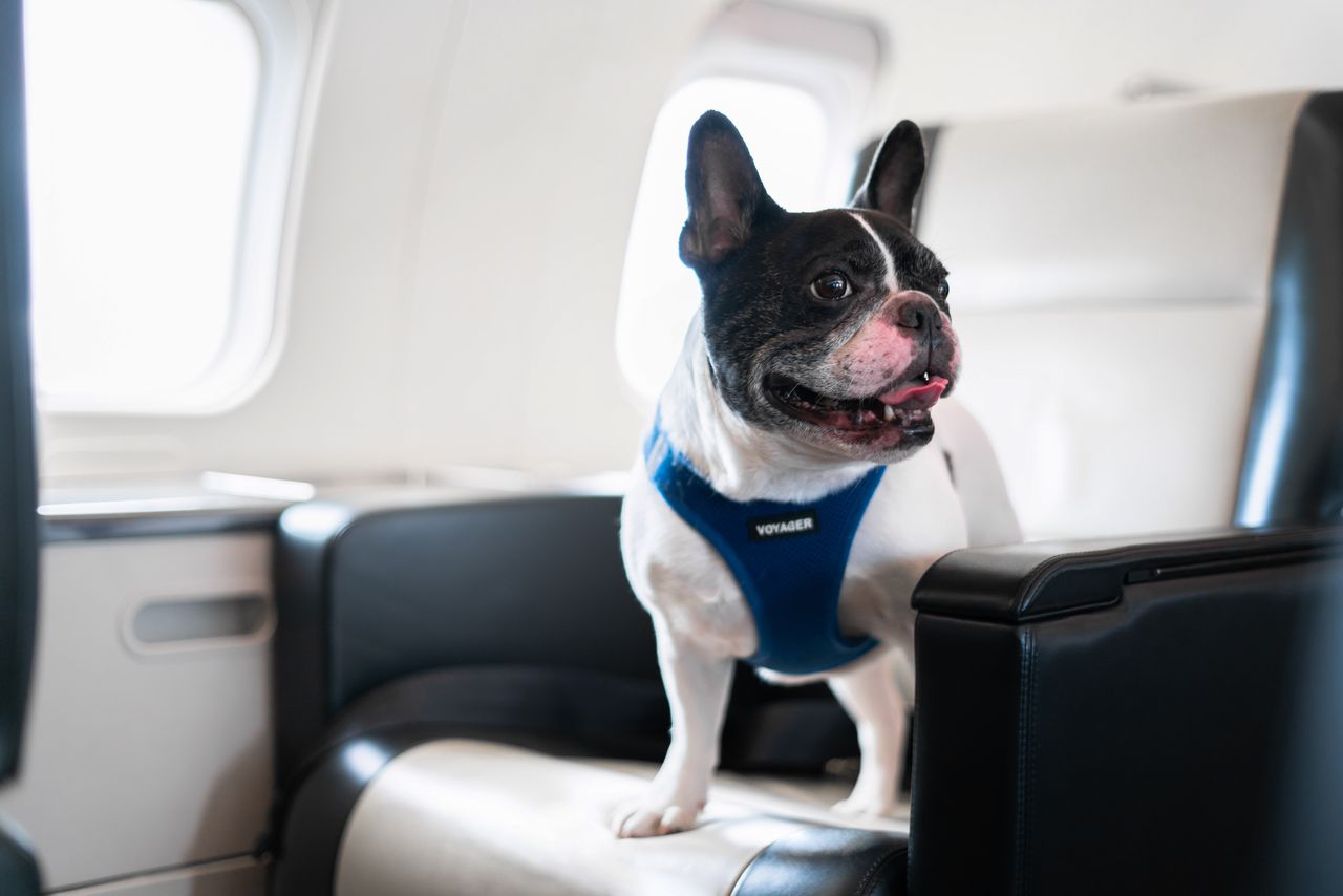部分包機提供寵物專屬服務。圖片來源:XO公司提供包機公司表示已採取措施抵消碳排放。XO公司為乘客提供向"全球氣候行動項目"捐款的選項;Jet Aviation品牌總裁大衞·帕多克稱,該公司使用部分可持續航空燃料,並致力於在飛機上禁用一次性塑料製品。