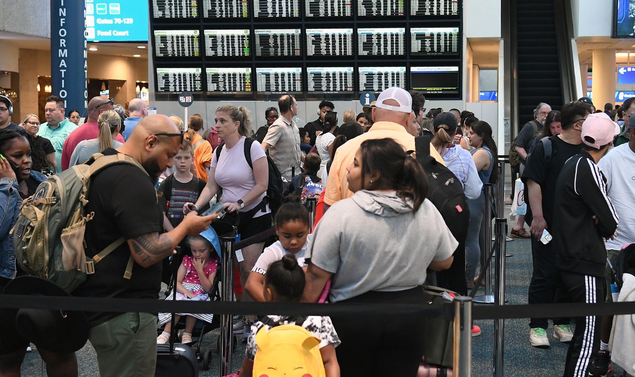 7月2日(週六),旅客們在邁阿密國際機場查看航班信息。圖片來源:Marta Lavandier/Associated Press格里澤爾説:“如果航空公司人員充足並有後備力量,本可以以更小的影響來應對……效率低下的問題。”