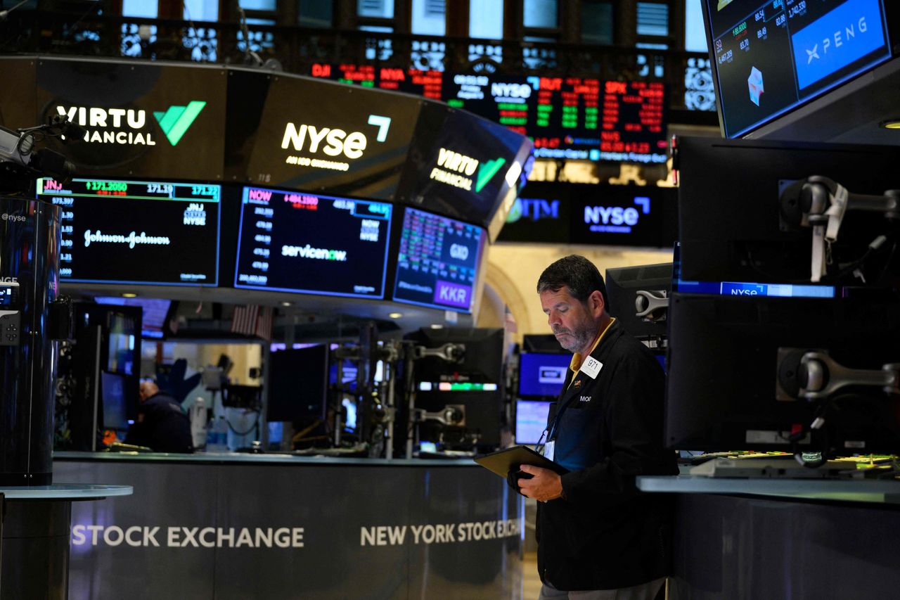 紐約證券交易所內工作的交易員。圖片來源:angela weiss/Agence France-Presse/Getty Images週一股票期貨下跌,此前中國意外降息,因數據顯示全球第二大經濟體的零售銷售和工廠產出疲軟。