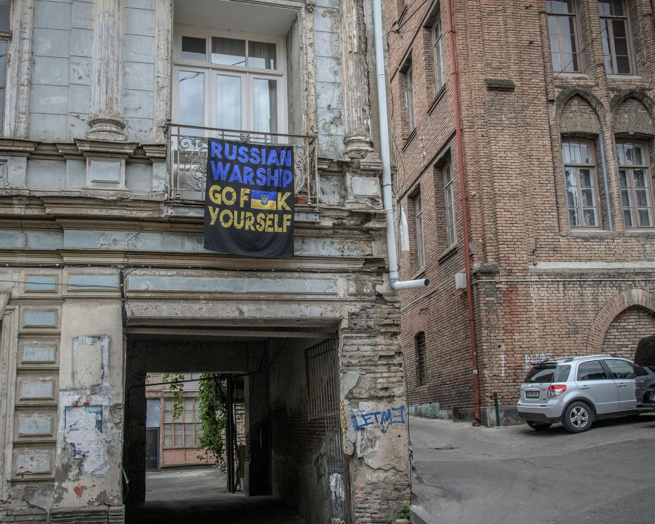 反克里姆林宮情緒在格魯吉亞很普遍。這是一所私人住宅的入口。儘管一些格魯吉亞人對俄羅斯人在其國家紮根持懷疑態度,因為格魯吉亞大片領土仍被俄羅斯佔領,但政府還是張開雙臂歡迎這些移民,希望從俄羅斯的人才外流中獲益。