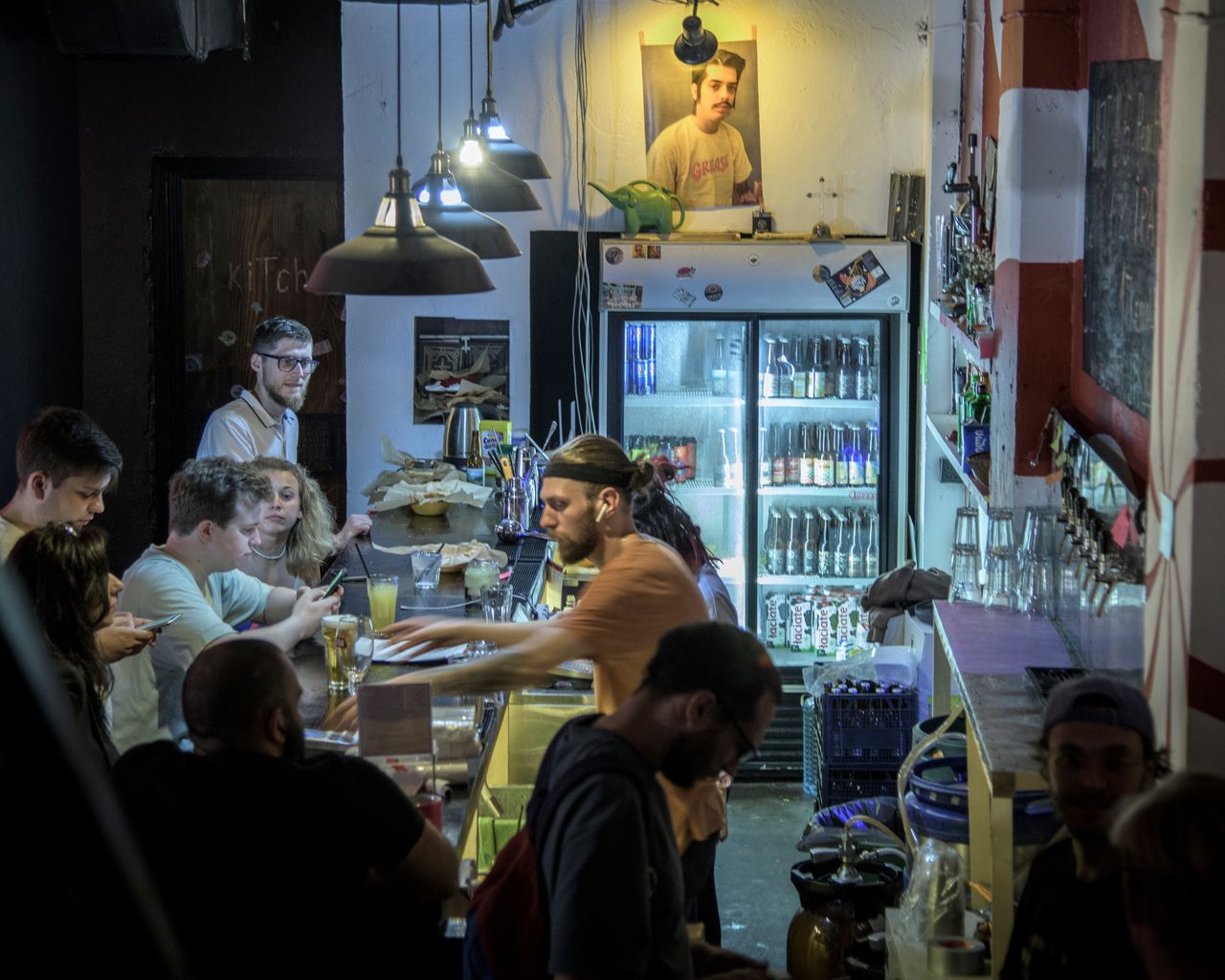 俄羅斯流亡者經常光顧第比利斯的這家酒吧,俄羅斯喜劇演員在這裏表演併為烏克蘭人籌款。