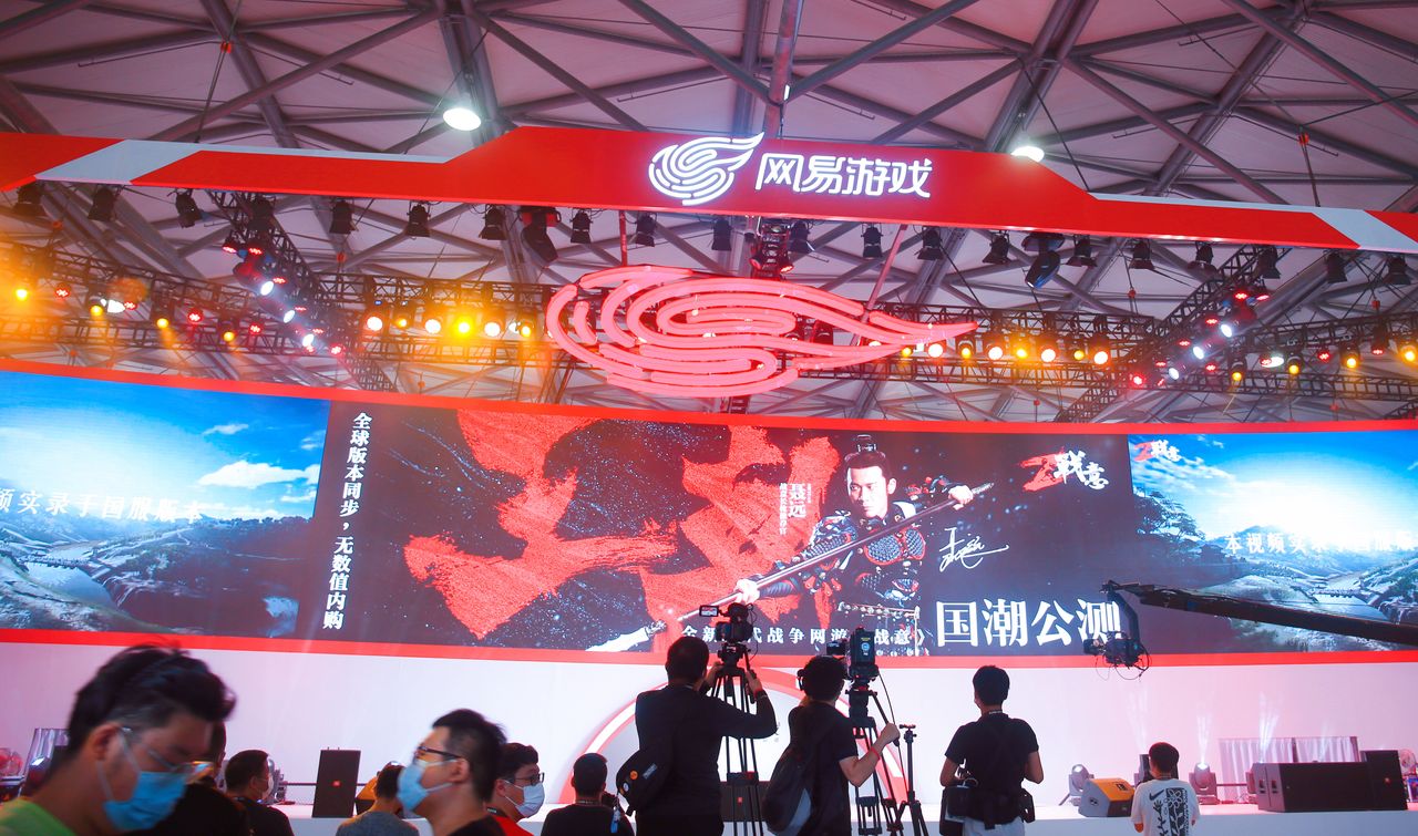 去年夏季上海行業展會上網易公司的展台,當時官方正暫停遊戲版號審批。圖片來源:Xing Yun/Costfoto/Future Publishing/Getty Images企業徵信平台天眼查數據顯示,在版號凍結期間,中國有超過1.6萬家遊戲公司倒閉。