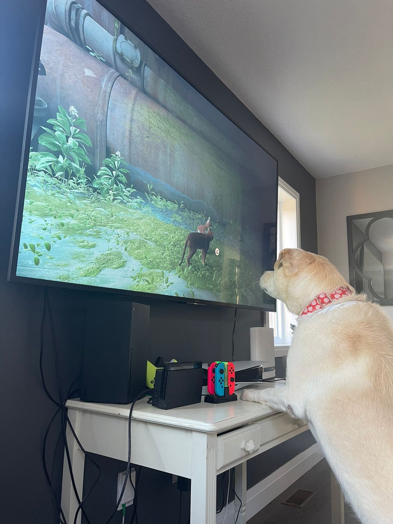 當克里斯·涅瓦斯玩《流浪》時,他的一隻狗開始對着屏幕吠叫。圖片來源:克里斯·涅瓦斯理查德·基什內爾是一位貓行為學家,在動物星球頻道《地獄來的貓》節目中被稱為傑克遜·銀河,最近上傳了一段YouTube視頻,記錄了他玩《流浪》最初一小時的體驗。