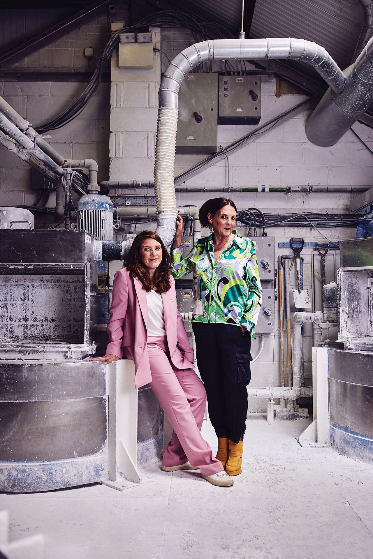 夏洛特·科斯比(左)與喬亞·斯塔德霍姆在Farrow & Ball塗料工廠攝影:阿倫·卡倫德每隔幾年,英國塗料製造商Farrow & Ball都會梳理其132色的調色板,新增色彩並淘汰部分舊色。色彩是Farrow & Ball的一切,其色調經過精密校準,既要映照時代精神,又力求超越時代侷限。9月29日推出的11款新色中,有受兒童喜愛的直升機種子啓發的提神抹茶綠"Whirlybird",還有如燕麥粥般温潤的米色"Stirabout"。