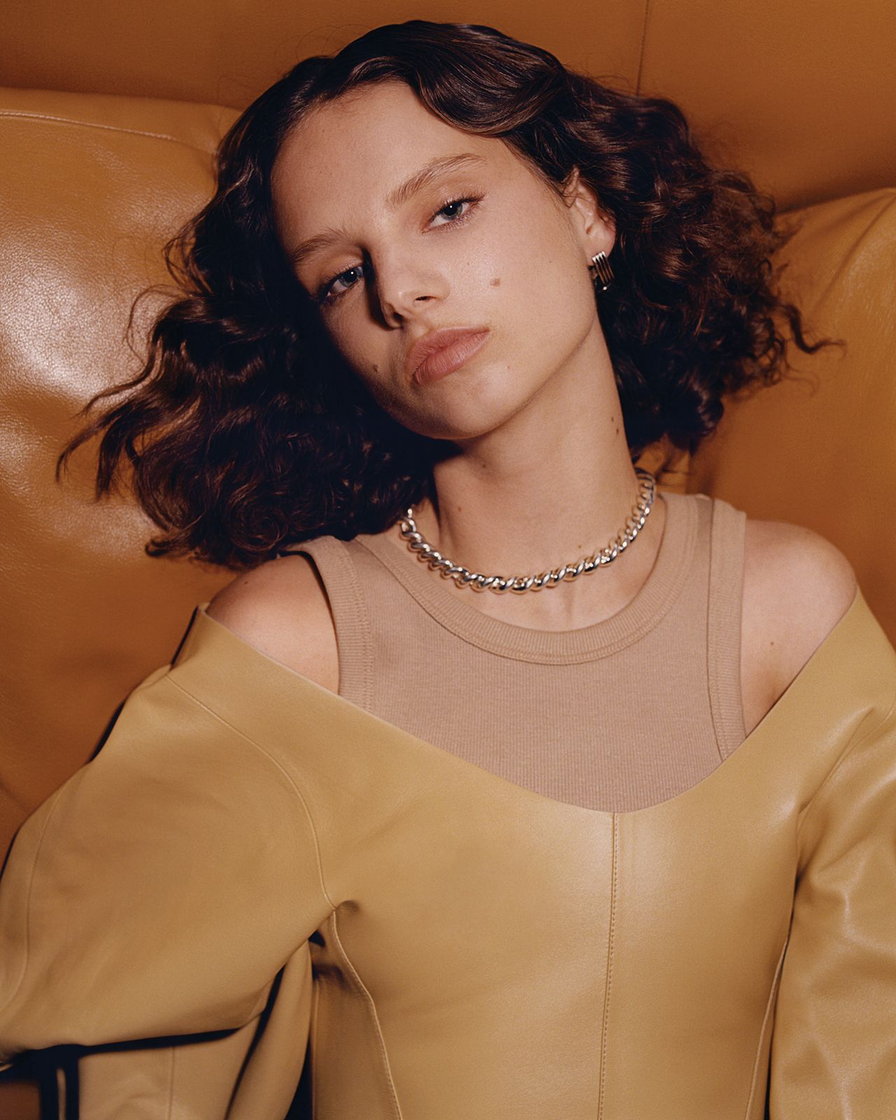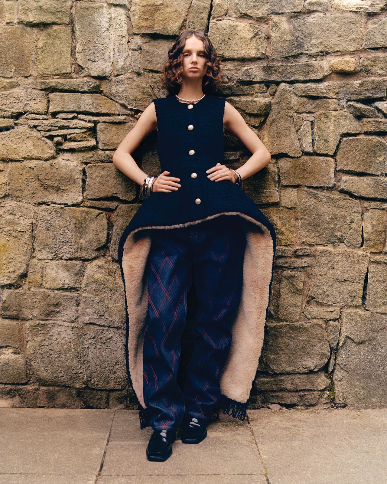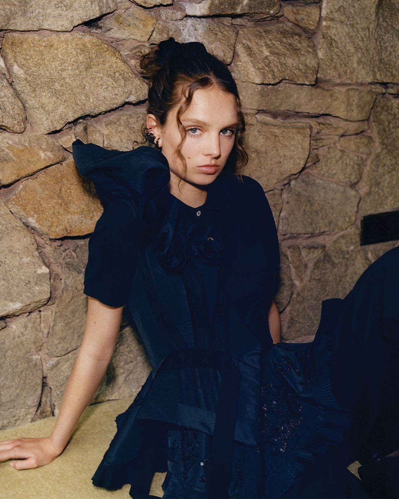 “我刻意選擇能包裹模特身體的雕塑感服裝,再疊加丹寧元素進行層次搭配,“與攝影師Jesse Jenkins合作的造型師Chloe Grace Press解釋道。