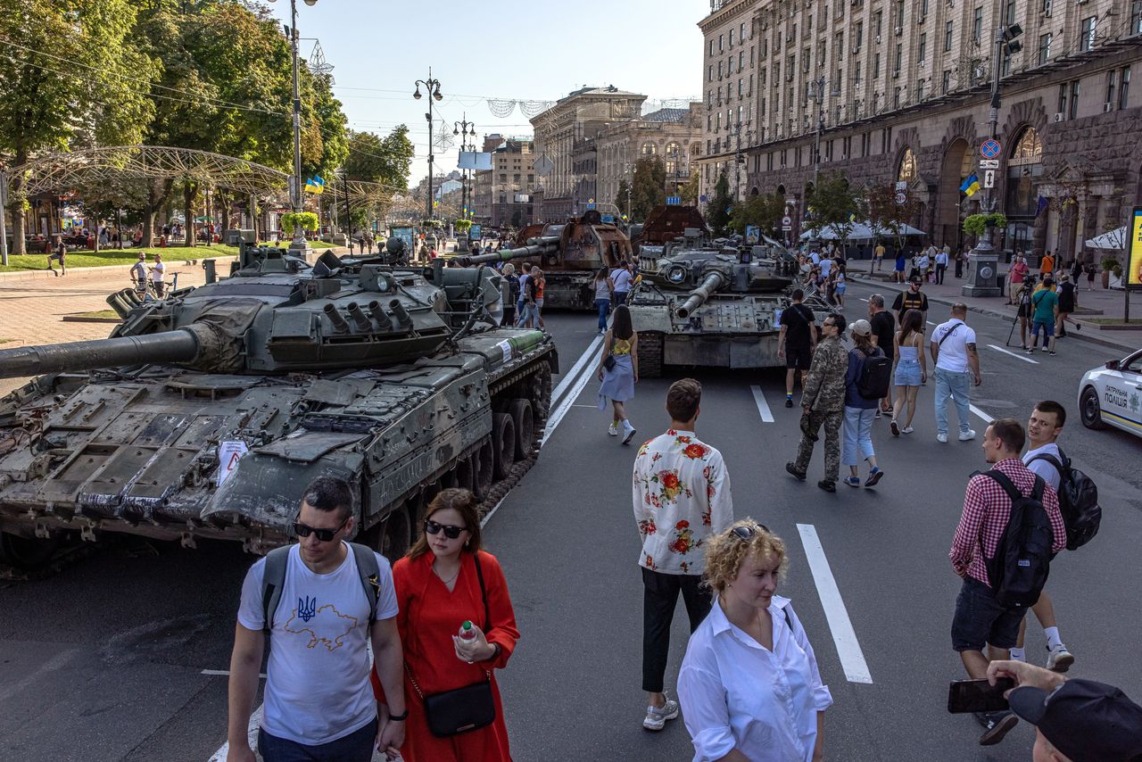 數百人不顧俄軍可能襲擊首都的風險,前往參觀被摧毀的俄軍車輛。