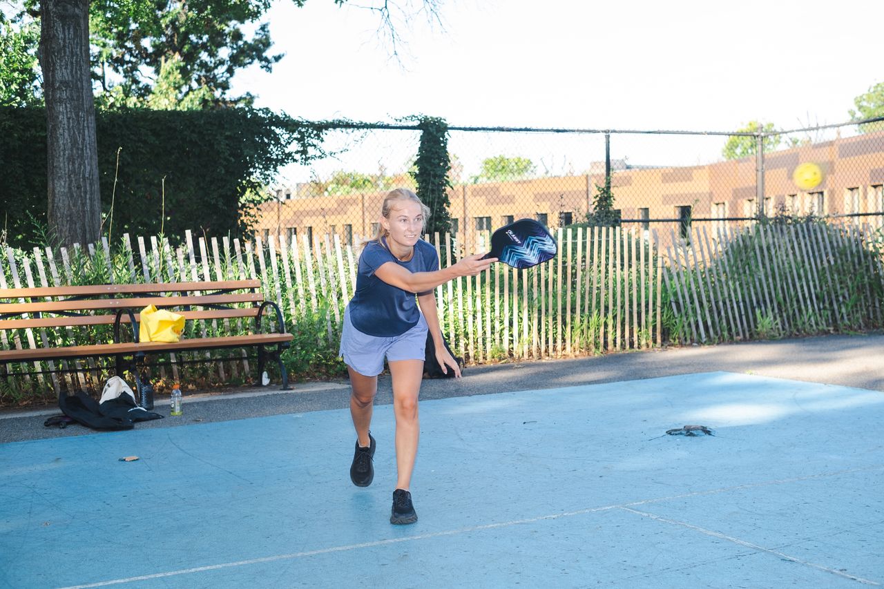 本月早些時候,作者在布魯克林高地的斯奎布公園將一個有孔的匹克球擊回給對手。而這一增長的很大一部分是由比這項運動通常人羣年輕得多的玩家組成的。魚溪基督教青年會的會員服務總監喬什·拉爾迪諾瓦在我開始打球的同一個夏天注意到了這一變化。“發生了代際的轉變,”他説。“[我]注意到更多的家庭,更多的20多歲的人,甚至高中生。”