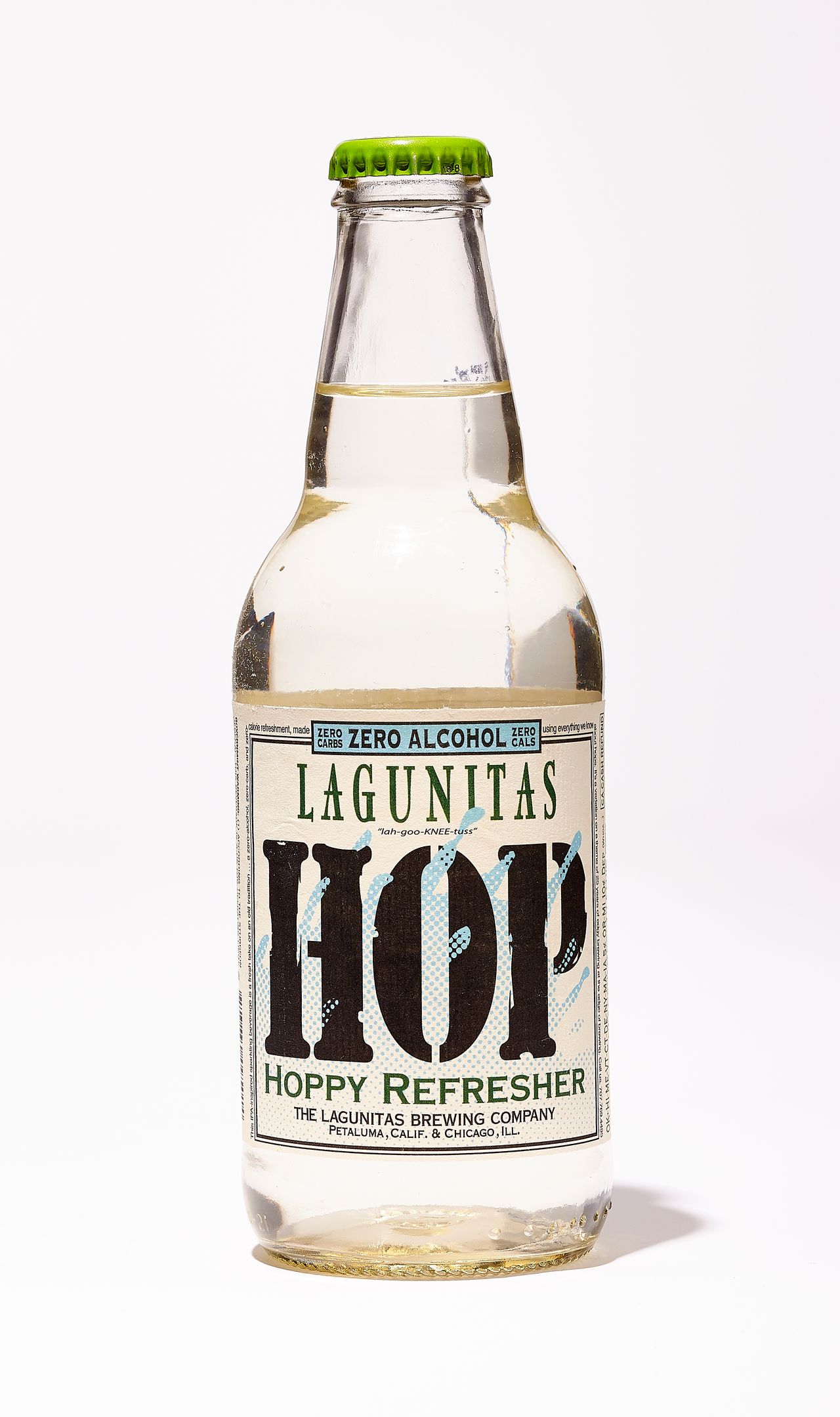 拉古尼塔斯釀酒公司是少數涉足啤酒花水領域的大型啤酒品牌。自2019年起,這家加州酒廠推出採用西楚、埃庫農特和世紀酒花搭配微量酵母的"啤酒花清爽飲”,釀酒大師傑里米·馬歇爾表示這種工藝能萃取出酒花芳香萜烯。該公司還生產含大麻成分的Hi-Fi Sessions系列,目前僅在科羅拉多州和加州特許商店銷售。