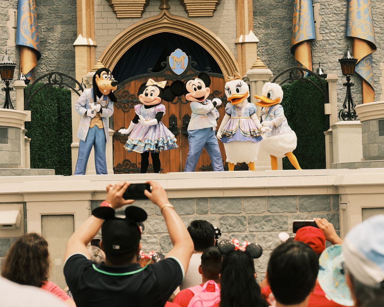 在奧蘭多迪士尼世界魔法王國主題公園,遊客們聚集觀看每日角色表演。一次迪士尼度假既可以是經濟實惠的旅行,也可以是名副其實的揮霍之旅——這取決於你如何規劃。